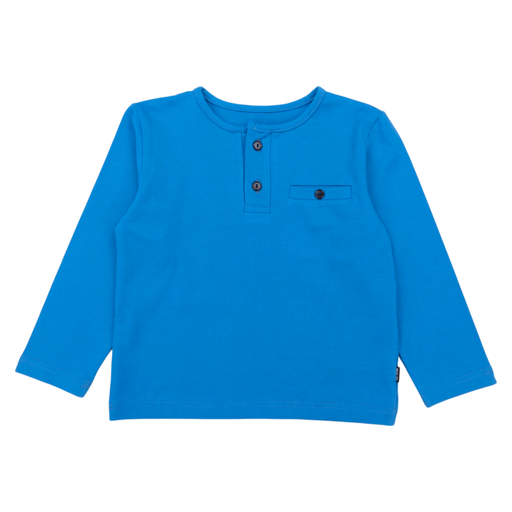 Stylish boy's T-shirt in blue with long sleeves, ideal for cooler days of the autumn-winter season. The model is decorated with buttons at the neckline and an imitation pocket on the chest, adding charm. Made of high-quality material, it provides comfort and freedom of movement.