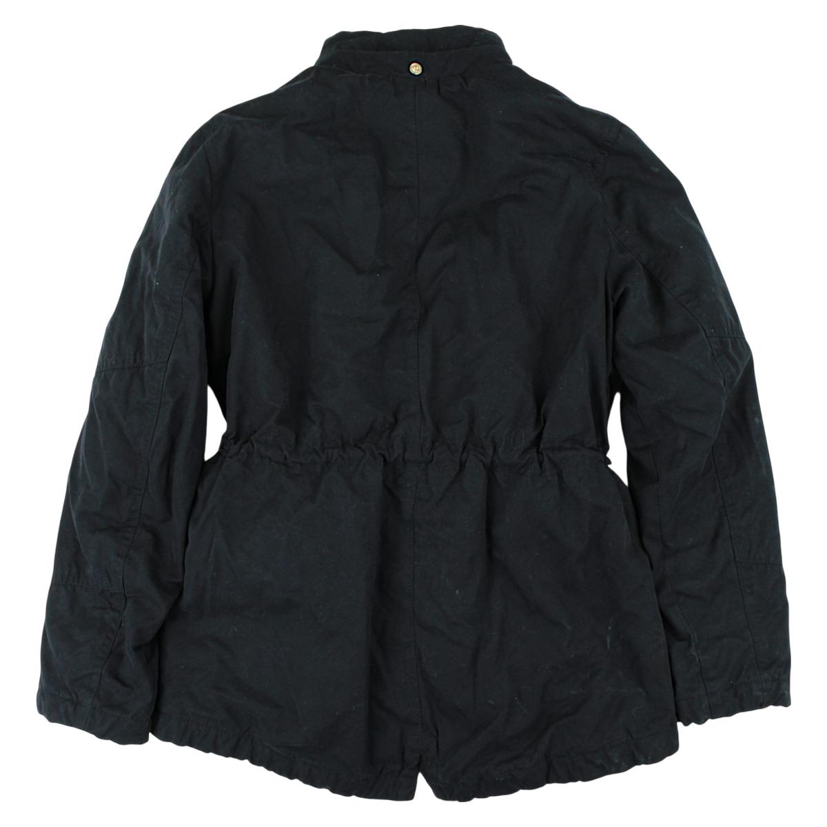 This black jacket for boys is designed with comfort and functionality in mind. A zipper at the front makes it easy to put on and take off. The jacket has long sleeves for added protection against the cold. Two chest pockets are perfect for storing toys or small accessories. The back of the jacket is slightly longer for added comfort. Elastic drawstrings at the waist allow for a better fit, ensuring a comfortable fit. This jacket is perfect for cold days, providing warmth and comfort. Please note that this is a used item, which means it may show minor signs of wear but still retains its basic functionality.