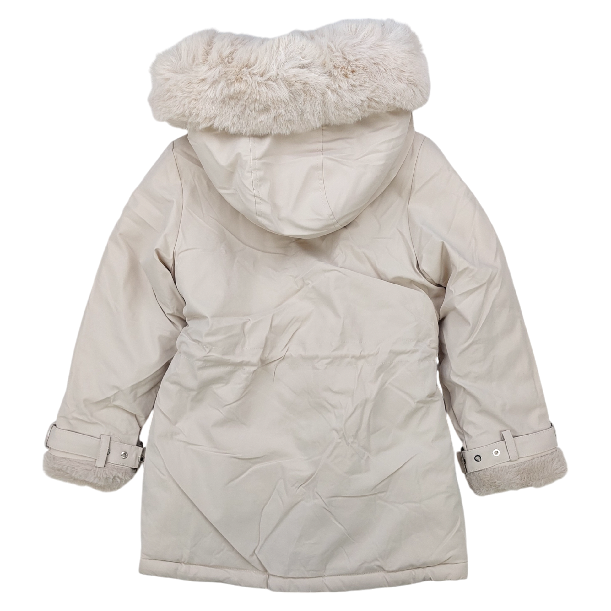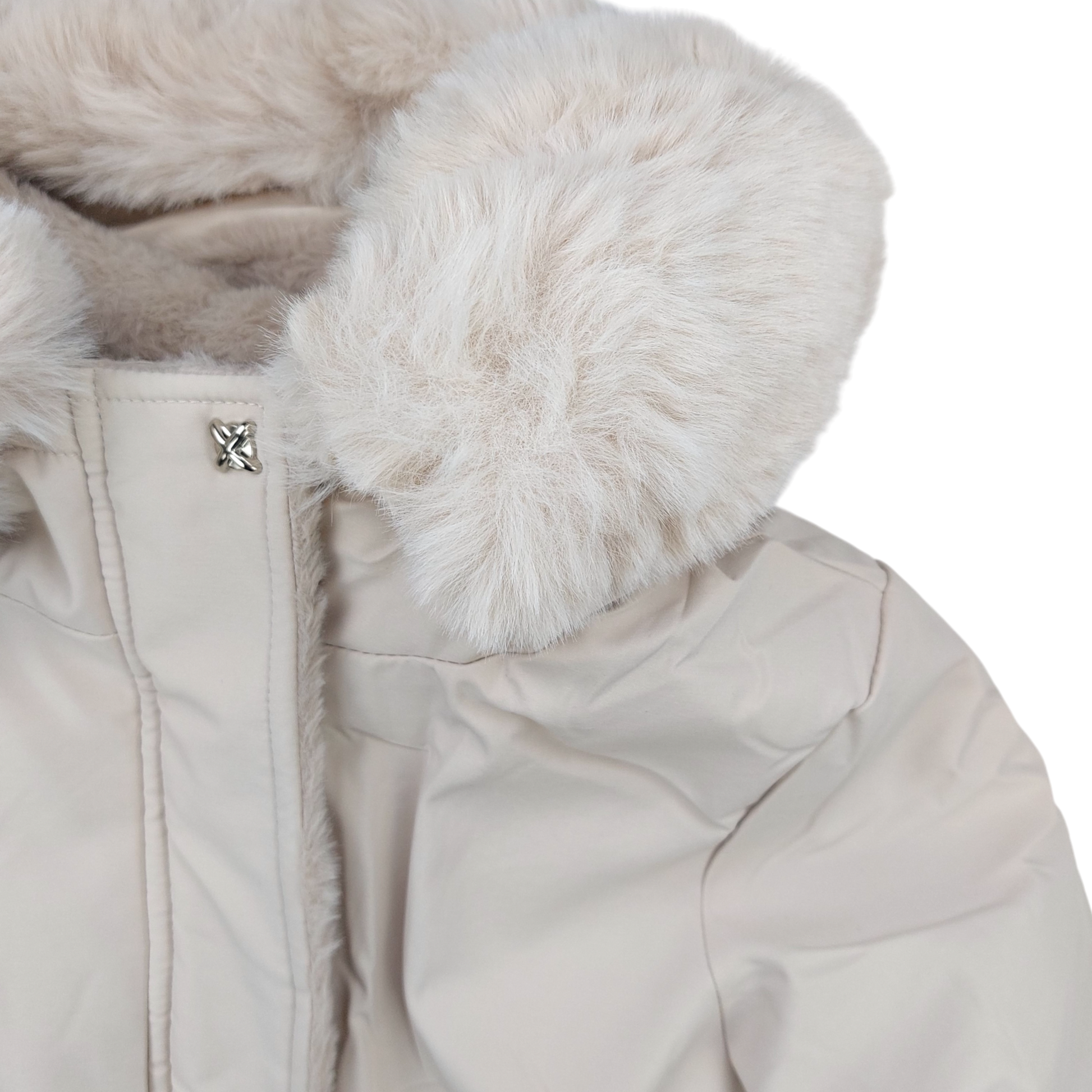 Girls' winter parka jacket Happy House KK-2245-211024 in an elegant beige color, it is a perfect choice for winter days. Made of high quality polyester , guarantees full protection against cold and moisture. Inside lined with soft teddy bear , provides warmth and comfort when worn. Detachable hood Finished with beautiful faux fur, it adds elegance, and the ability to detach it makes the jacket universal and suitable for various occasions.