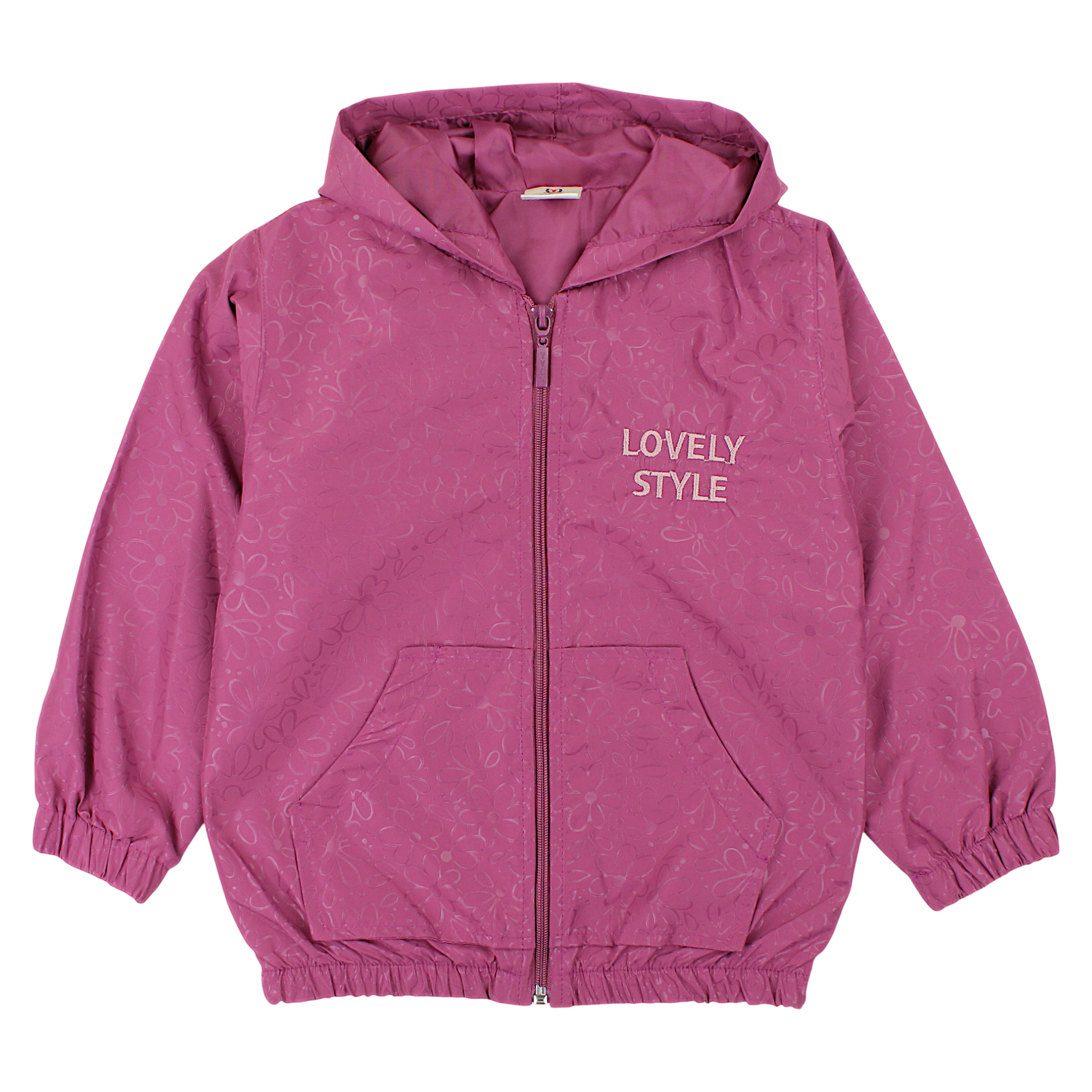 Stylish girl's set consisting of a light, spring jacket with a hood and a two-piece tracksuit . The long-sleeved sweatshirt has elastic cuffs at the sleeves and bottom , and the trousers with an elastic waistband ensure comfort. The zipper in the jacket makes it easy to put on, and the pockets allow you to hide small items. Delicate prints and fashionable inscriptions add a modern style to the set. The perfect choice for spring walks and everyday activities.