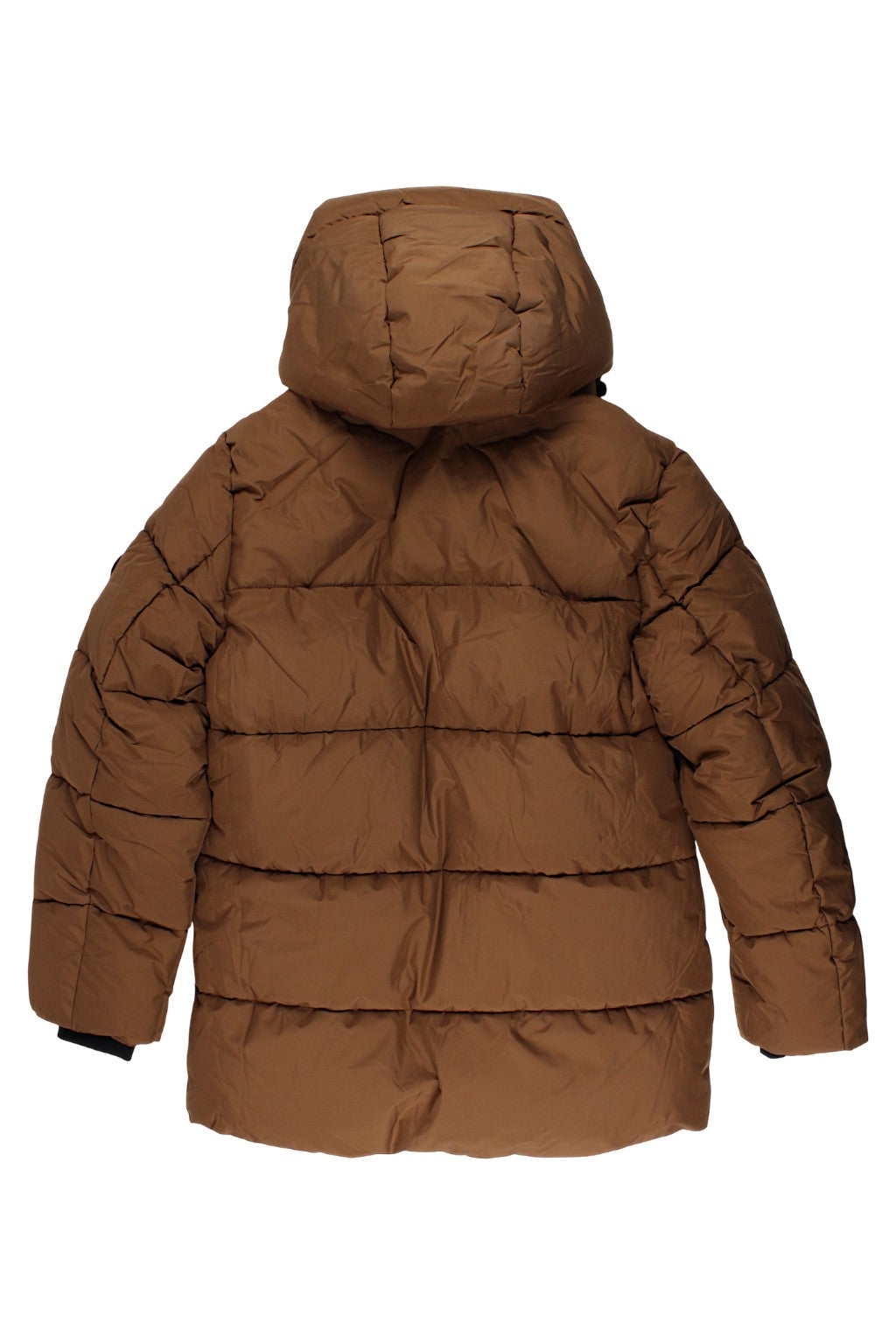 Introducing a boys' winter jacket in an elegant camel color from the renowned brand Happy House . This jacket is the perfect blend of style and functionality, designed for boys who need protection from the cold during the fall and winter seasons. Made of high-quality material, it provides excellent thermal insulation, making it incredibly warm and comfortable to wear.