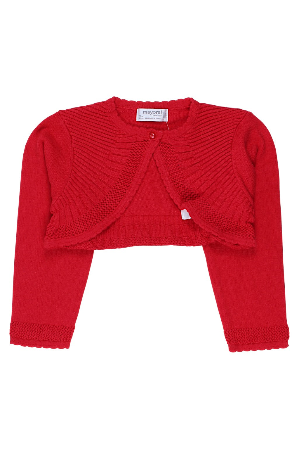 Discover this incredibly charming bolero sweater for girls from the renowned brand Mayoral , a perfect addition to any children's wardrobe. This stylish sweater comes in a vibrant red , making it perfect for a variety of occasions, from casual outings to more formal events. The sweater features long sleeves for extra warmth, and its thin construction makes it lightweight and comfortable to wear. The front fastens with buttons , adding elegance and making it easy to put on. The back is plain, highlighting its classic design. The sweater has no pockets or additional embellishments, making it versatile and easy to match with various outfits. Made of high-quality materials, it is soft to the touch and gentle on children's delicate skin. Perfect for girls who value both style and comfort. Designed for children, the product guarantees a proper fit and comfort.