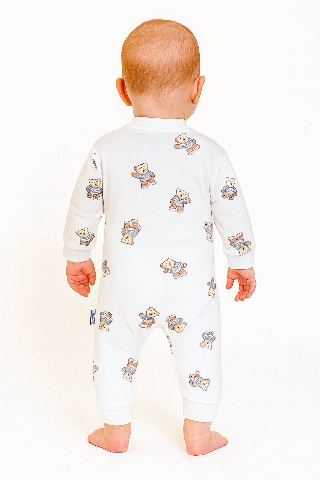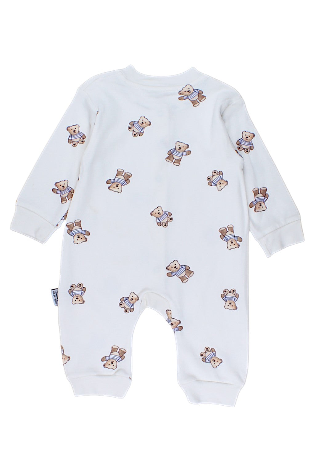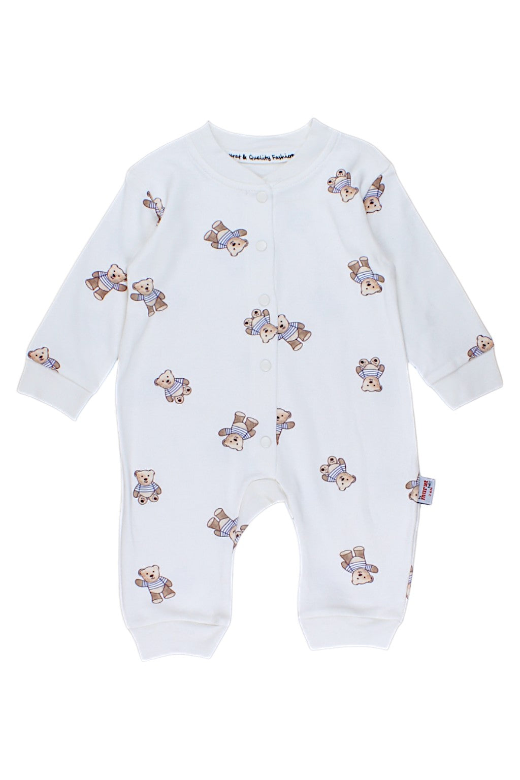 Introducing a unique baby romper in a delicate cream color from Murat Baby . Made of 100% soft cotton , this charming romper is perfect for the spring and summer season. Designed with baby's comfort in mind, it features long sleeves and practical fasteners for easy changing. Additionally, aesthetic details like subtle embellishments add elegance, making it the perfect choice for any little girl's occasion.