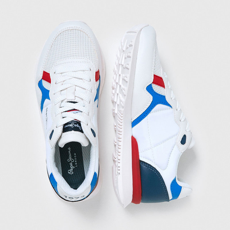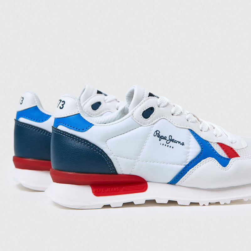 Pepe Jeans Sneakers BRITT REBIRTH BOYS junior boy PBS30518-800 WHITE are the perfect choice for young boys who value comfort, fashionable look and exceptional durability of footwear. These stylish sneakers with a unique combination of colors - white, blue and red, will work great for every season, being a perfect complement to both sports and casual styling.