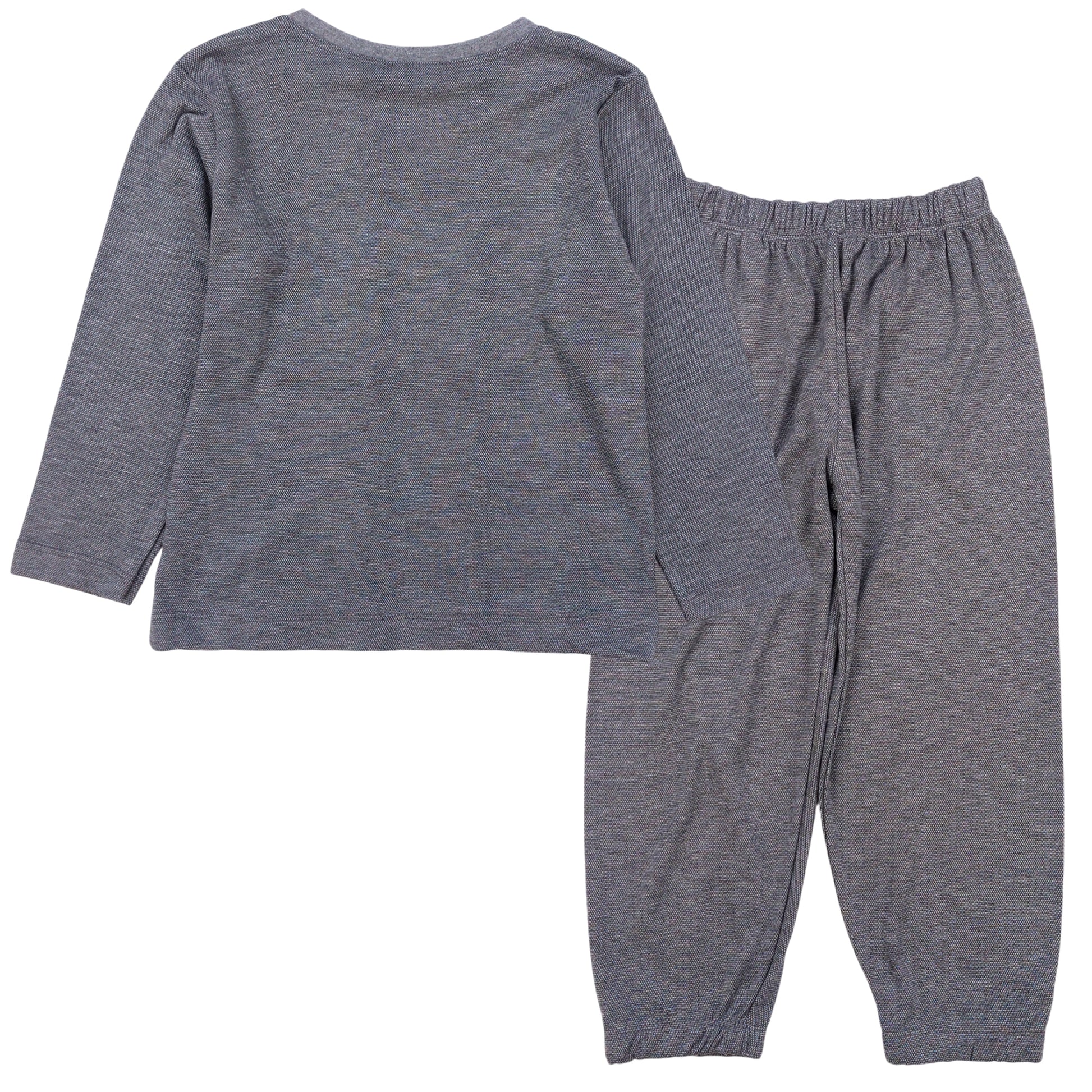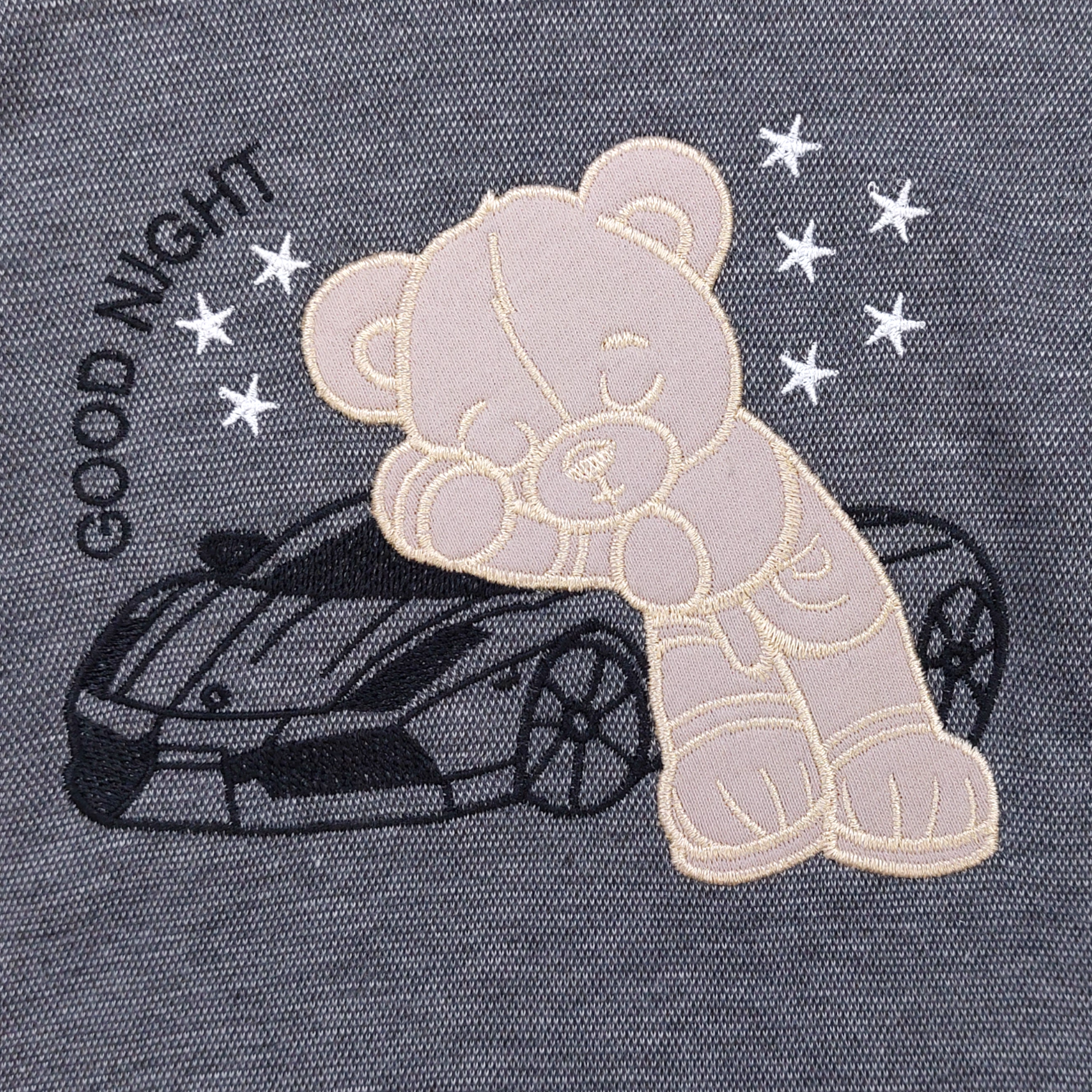 Boys' pajamas in ash color with a cute motif of a teddy bear sleeping next to a car and the inscription "Good Night". Made entirely of soft and skin-friendly cotton, it provides comfort and convenience during sleep. Top with long sleeves and pants with elastic band at the bottom, ideal for colder nights of autumn and winter.