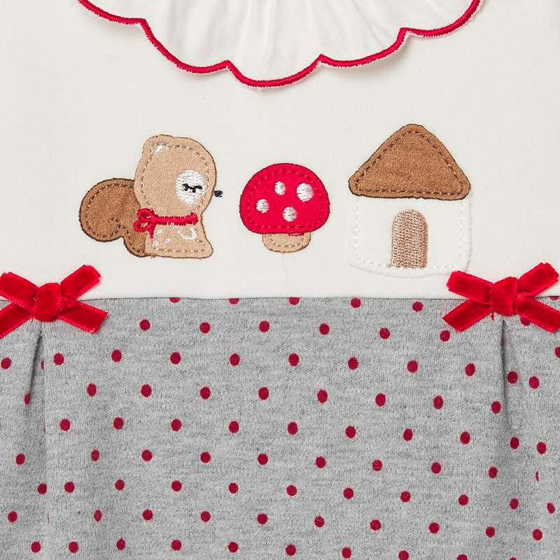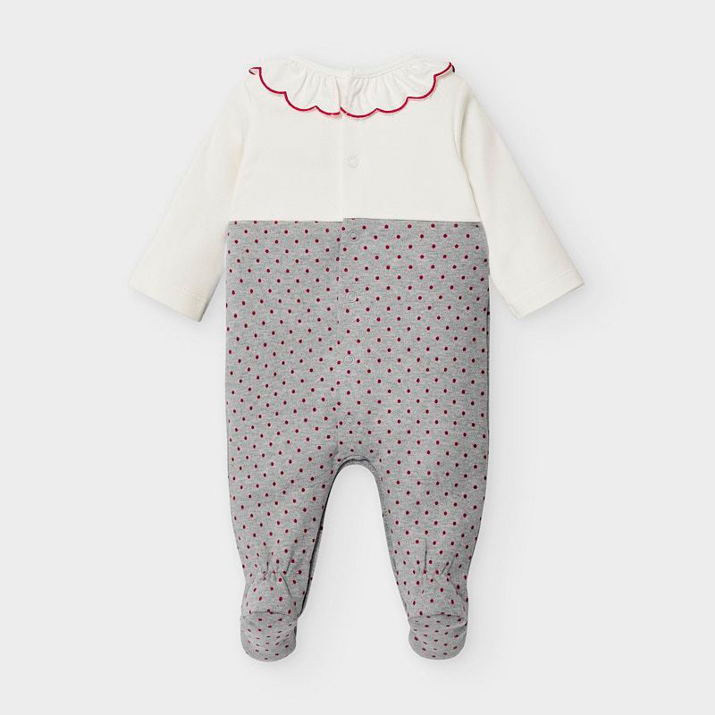 Children's polka dot pajama with collar and embroidery girl Mayoral from the newborn girl collection from the fall-winter season, product code 2755, color 65 Gray. Clothing for newborns.