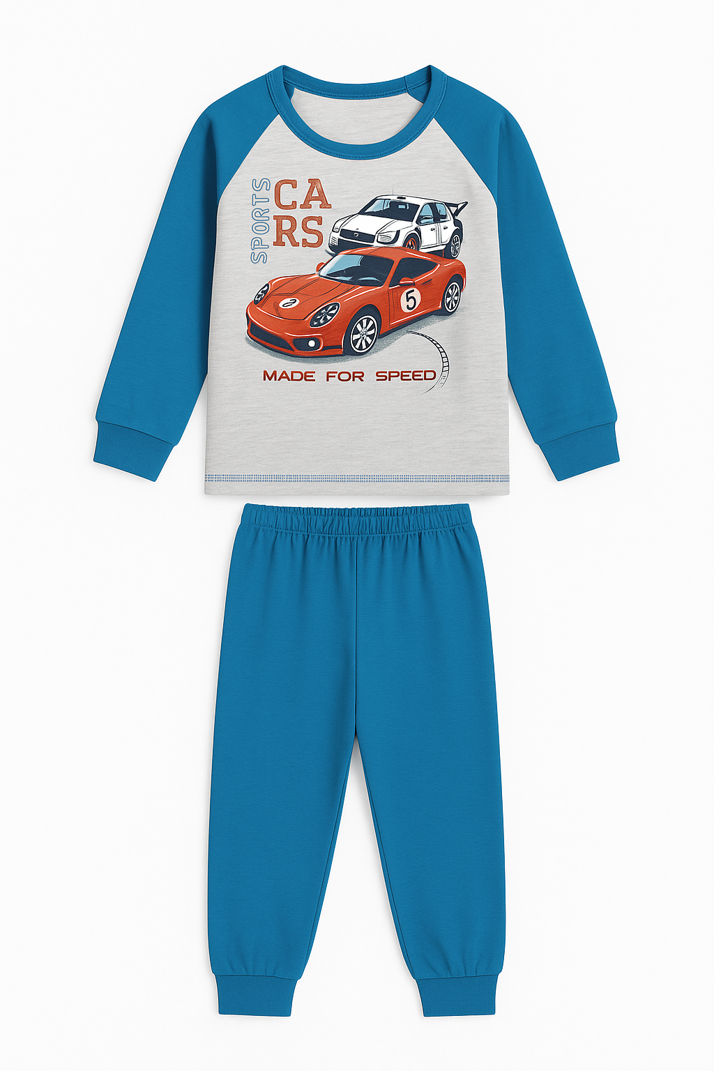 Prezentujemy piżamkę chłopięcą w kolorze niebieskim od marki Sukces, model 8095-221025, idealną na sezon jesień-zima. Ta dwuczęściowa piżamka składa się z koszulki z długim rękawem oraz spodni. Koszulka posiada okrągły dekolt i jest ozdobiona atrakcyjnym nadrukiem, który dodaje jej uroku. Spodnie mają elastyczną talię, co zapewnia wygodę i swobodę ruchów podczas snu. Całość wykonana jest z wysokiej jakości bawełny, co gwarantuje miękkość i komfort noszenia. Piżamka jest przeznaczona dla chłopców i doskonale sprawdzi się jako element garderoby na chłodniejsze noce. Dzięki uniwersalnemu kolorowi i modnemu designowi, z pewnością przypadnie do gustu każdemu dziecku.