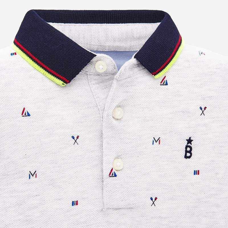 Boys' short-sleeved patterned polo shirt Mayoral from the baby boy collection from the spring summer season, product code 1153, color 96 gray. Children's clothing.