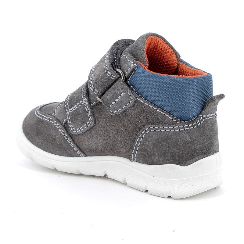 Grey suede with navy blue inserts and stylish stitching give the shoes a sporty yet elegant character. The whole is complemented by the Primigi logo and contrasting orange accents, which add energy and childlike joy to the shoes.