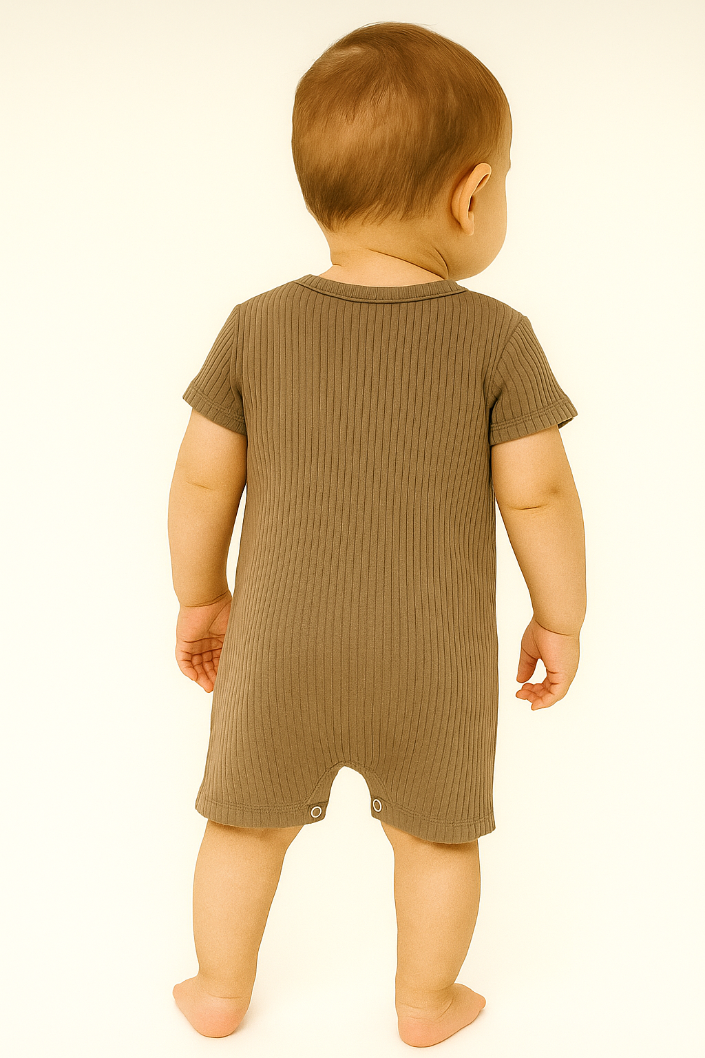 Fastened with snaps at the front, it's easy to put on and take off. Additionally, the romper features practical pockets that can be used to store your little explorer's most important treasures. Short sleeves and legs allow for freedom of movement, and the entire design is meticulously crafted, guaranteeing high-quality workmanship.