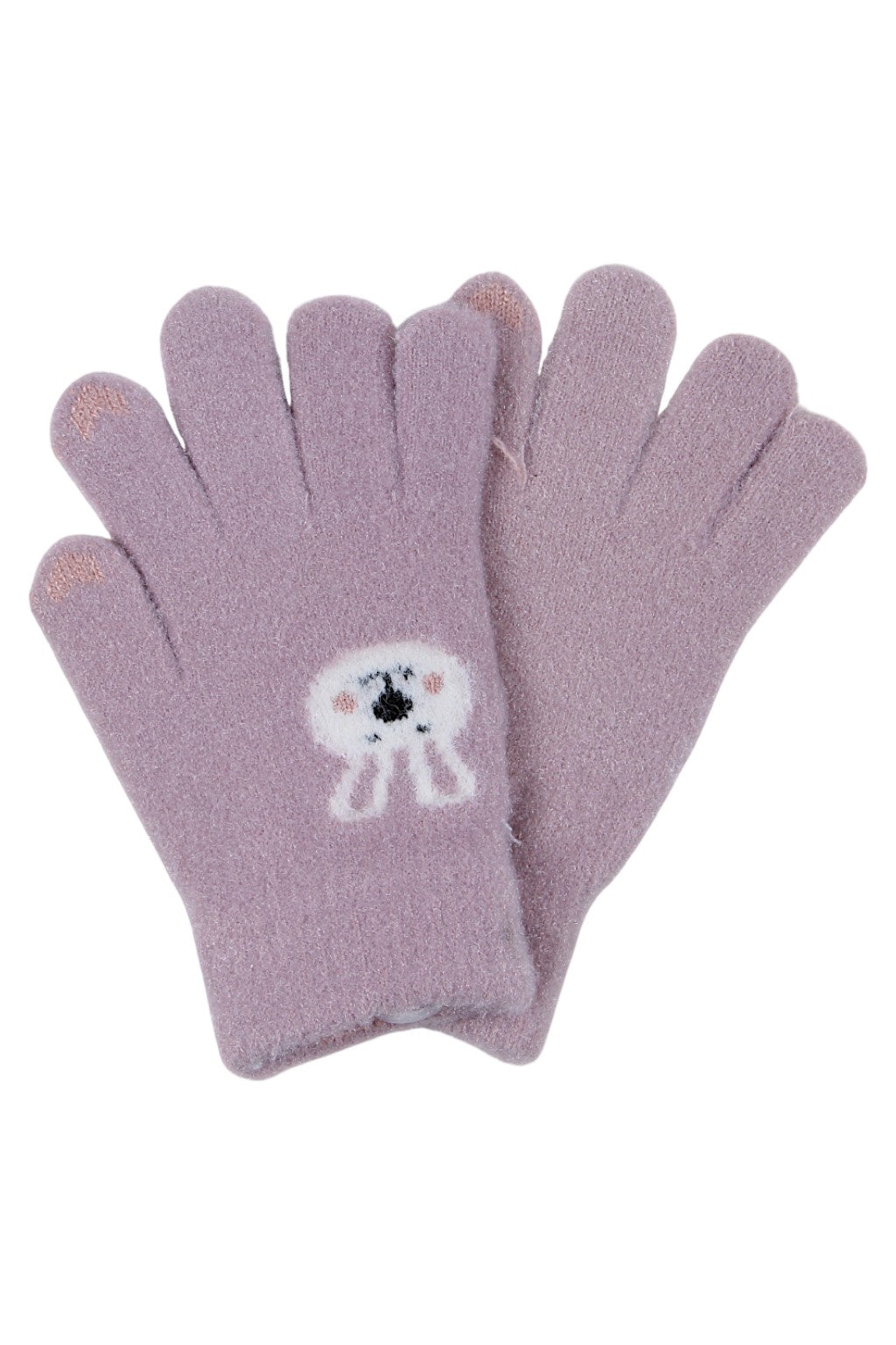 Girls' gloves with a rabbit motif in heather color
