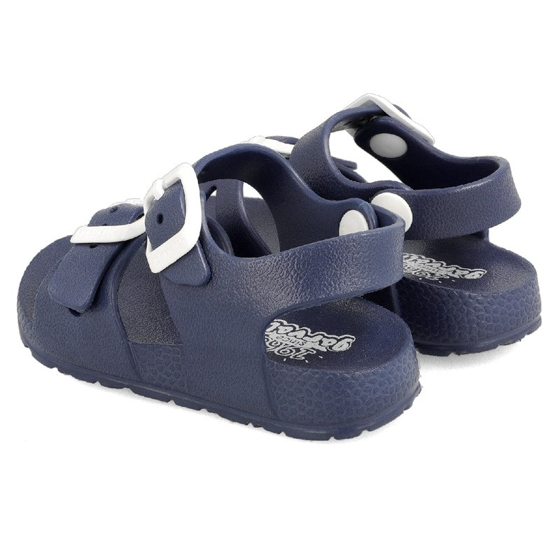 Garvalin 202815-A navy blue boys' sandals are the perfect choice for any boy on warm summer days. Comfortable, stylish and functional, they have been designed with the comfort and safety of children's feet in mind. Their universal navy blue color with white accents adds chic and makes the sandals easy to match the everyday styling of a young explorer.