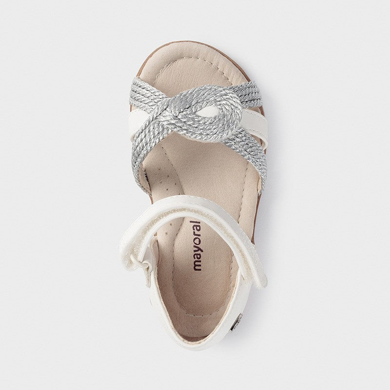 Children's braided sandals with Velcro fastening for girls Mayoral from the baby girl collection from the spring-summer season, product code 41264, color 20 white/silver. Children's shoes.