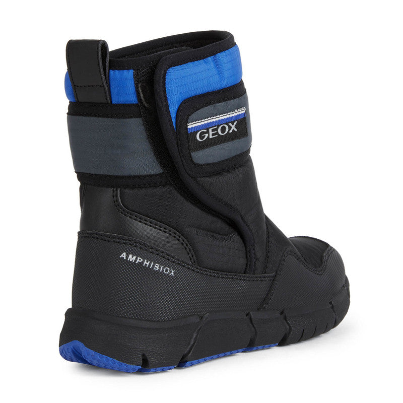 Geox J269XF-0FU50-C0245 insulated snow boots for boys in black with blue accents are a great choice for cool autumn and winter days. Stylish look combined with comfort and functionality make these shoes ideal for both everyday walks and family trips on snowy days. For parents who are looking for durable and comfortable footwear for their child, this is a product that meets all expectations.