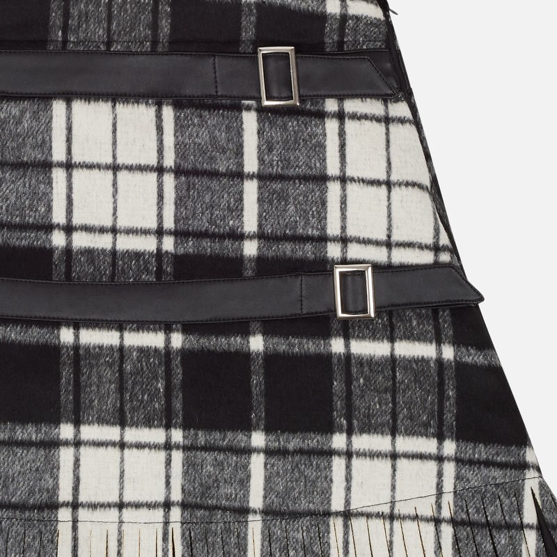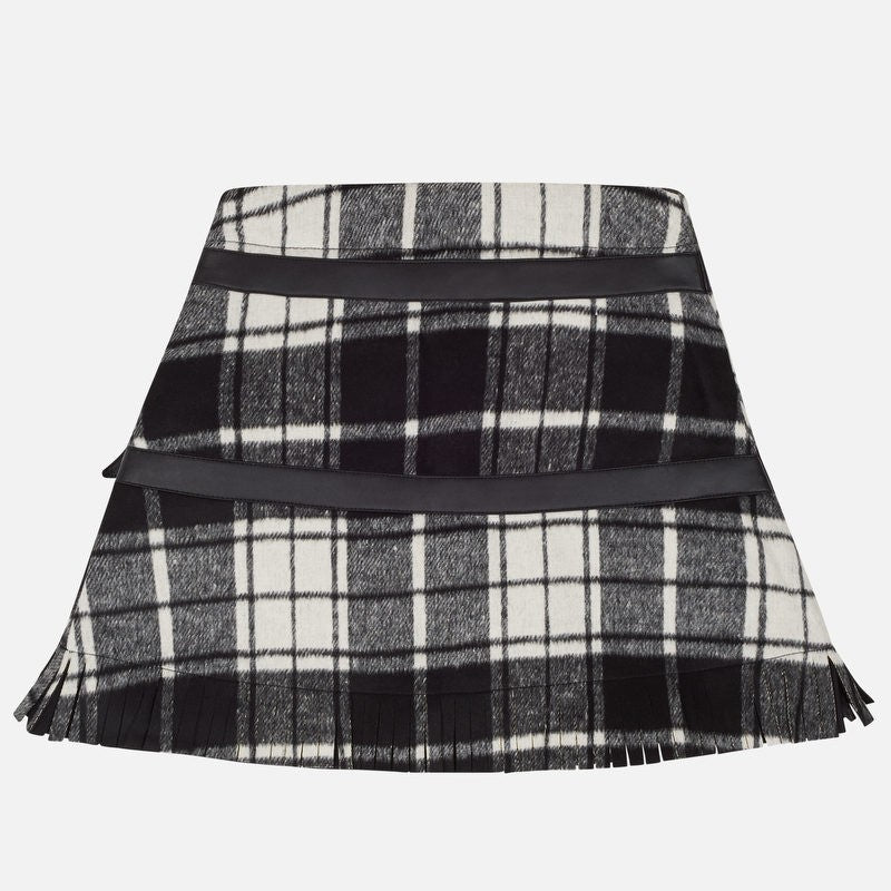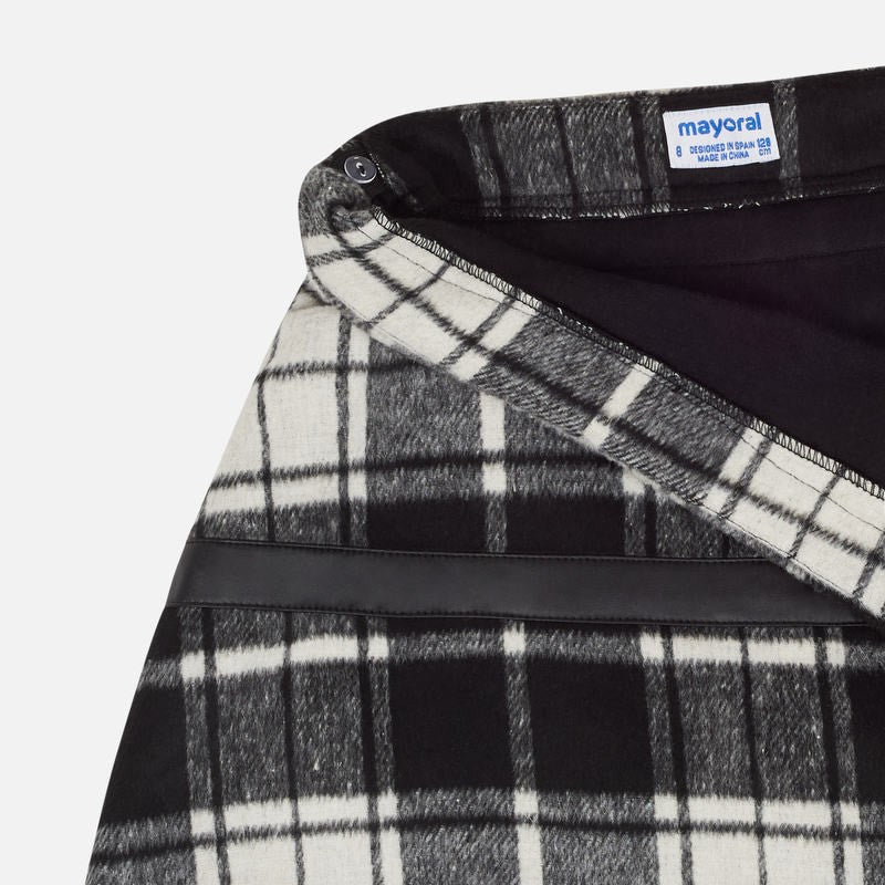 Mayoral children's clothing. Checked skirt with fringes from the junior girl collection from the fall winter season. Manufacturer's product code 7912 color 54 Black.