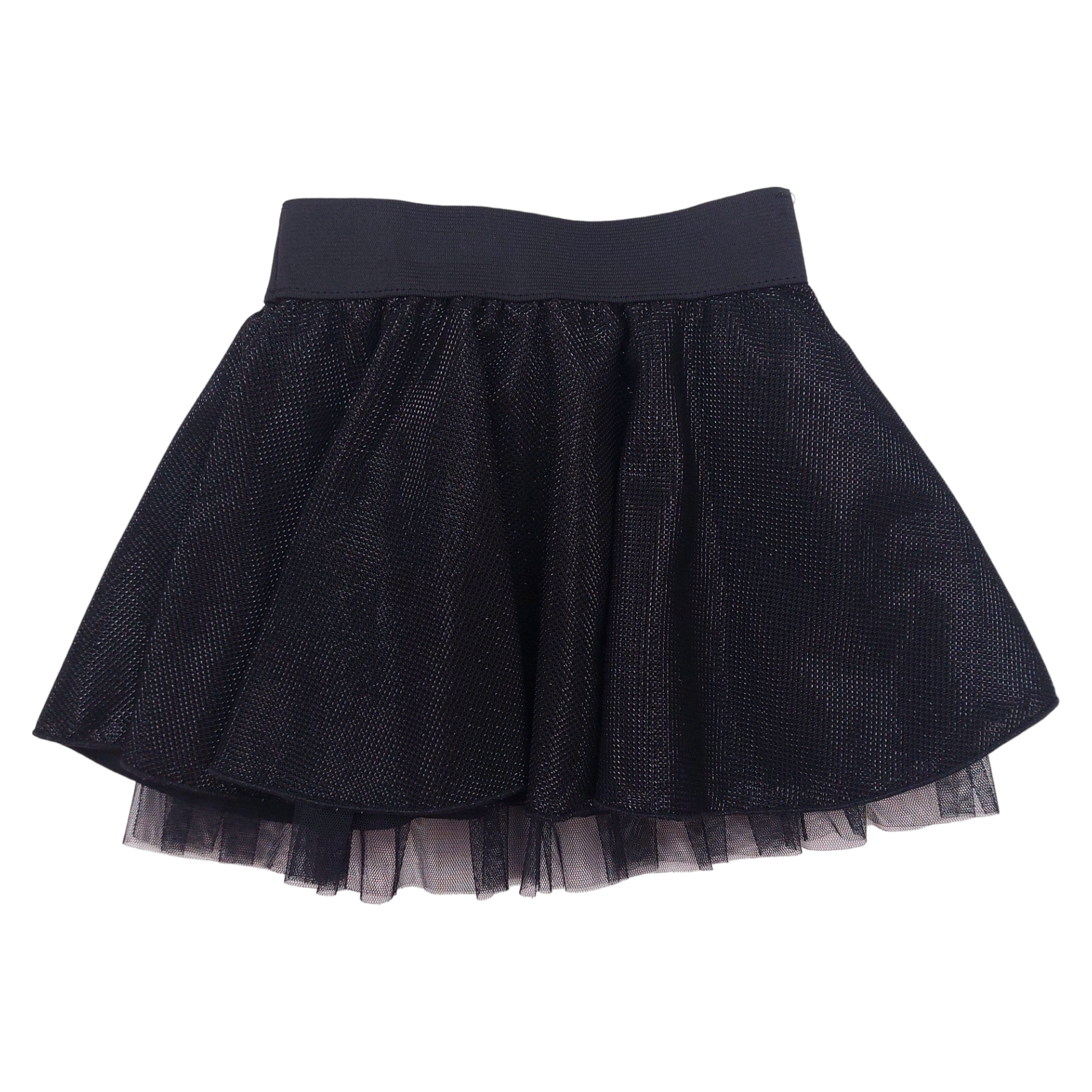 A unique girls' skirt in black, dedicated to young ladies in sizes from 122 to 158. The model impresses with its shiny material, decorative bow at the waist and delicate tulle lining that adds volume and elegance.