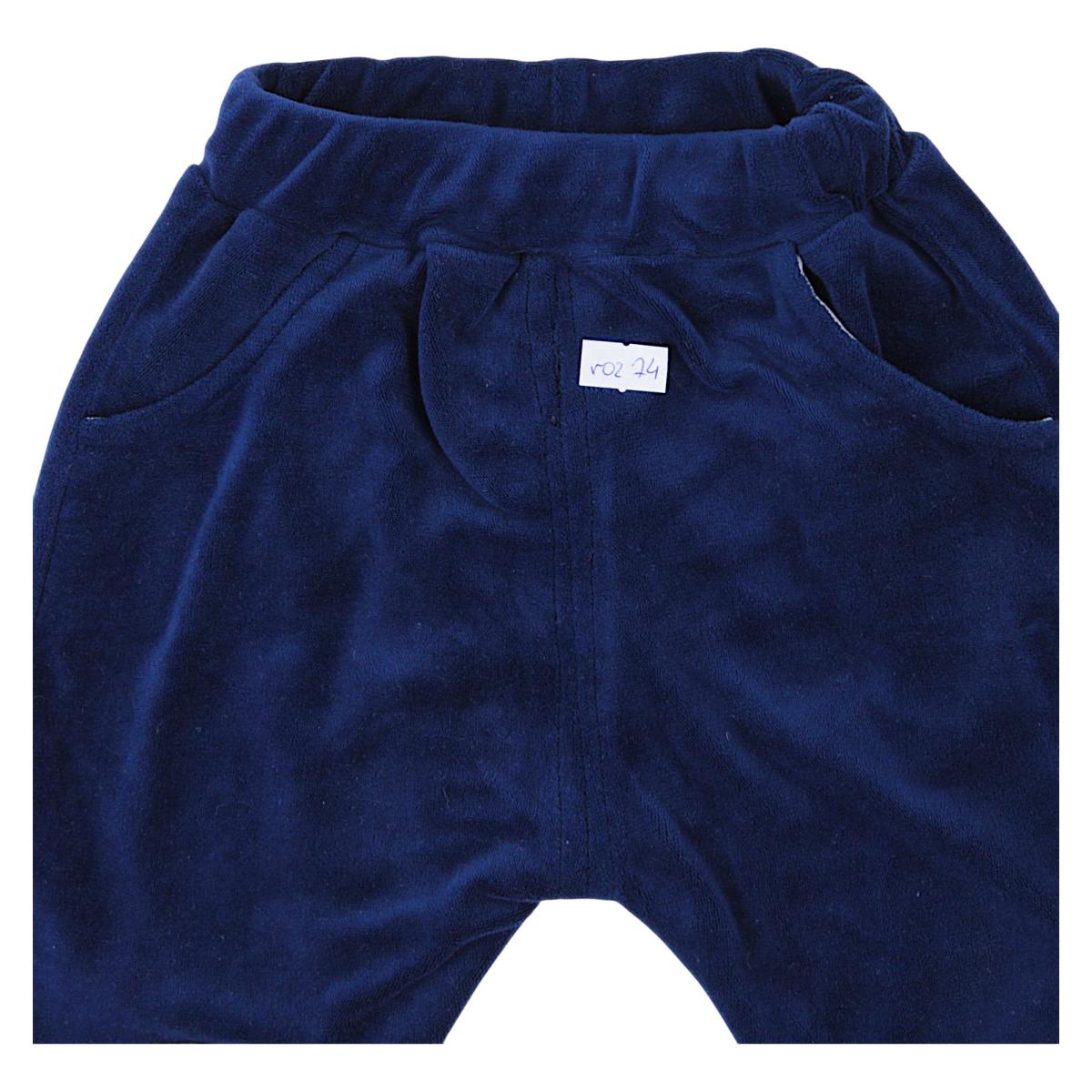 These navy blue pants are the perfect choice for your little fashionista. Made of soft fabric, they provide comfort and freedom of movement. They feature practical pockets for storing small items. Interesting cookie-shaped appliqués on the knees add a unique touch. The elastic waistband makes them easy to put on and take off. Perfect for everyday play and preschool!