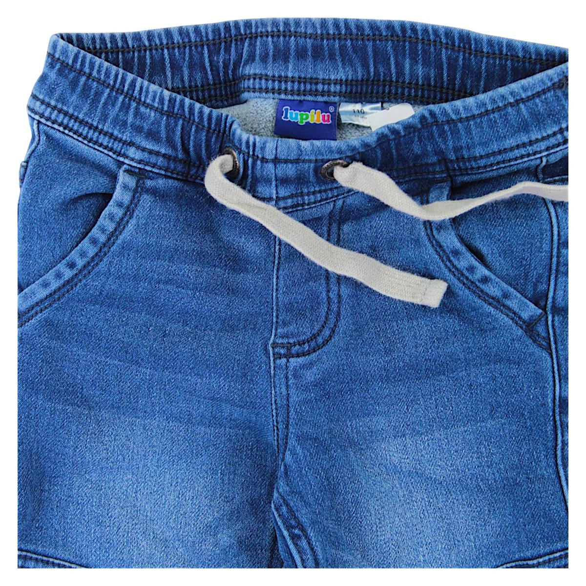 We offer unique blue pants for boys that will be the perfect addition to any young explorer's wardrobe. These pants feature a comfortable, elastic waistband with a drawstring for comfort. Two front pockets will help store every little one's most important treasures, while stitching details give them a modern look. The front features fashionable, eye-catching details. The back is simple, making them versatile and suitable for a variety of outfits. The entire piece is made of durable material that will surely withstand many childhood activities. This product is designed for boys who enjoy active leisure.
