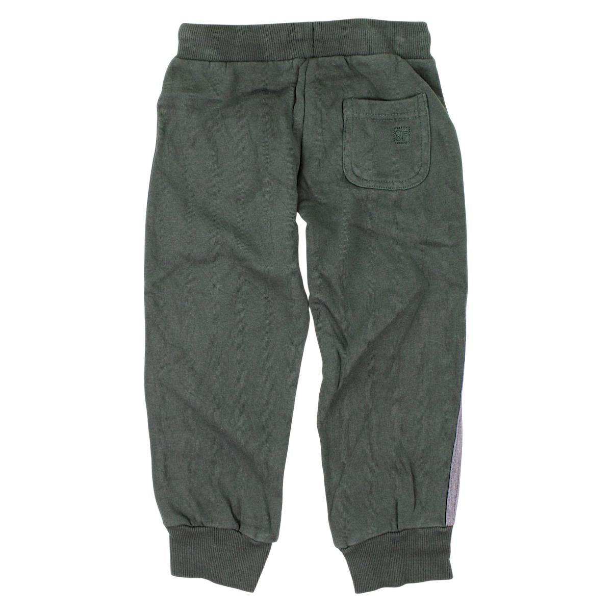 These delightful boys' pants are the perfect choice for any season. Crafted in green , with subtle gray stripes on the sides, they add charm and style. The front of the pants features an elastic waistband with an adjustable drawstring, allowing for a perfect fit. The leg length allows for adequate freedom of movement both during play and for everyday wear. The pants also feature pockets , a practical addition, perfect for storing small items. The back is unadorned, giving them a minimalist and timeless style. The fastening is simple and functional, requiring no additional accessories. This product is designed for boys and is perfect for everyday wear. The pants match a variety of styles and can be paired with T-shirts, sweatshirts, or sweaters. Despite their used condition, they still look great, making them an attractive choice for parents looking for comfortable clothing for their children.