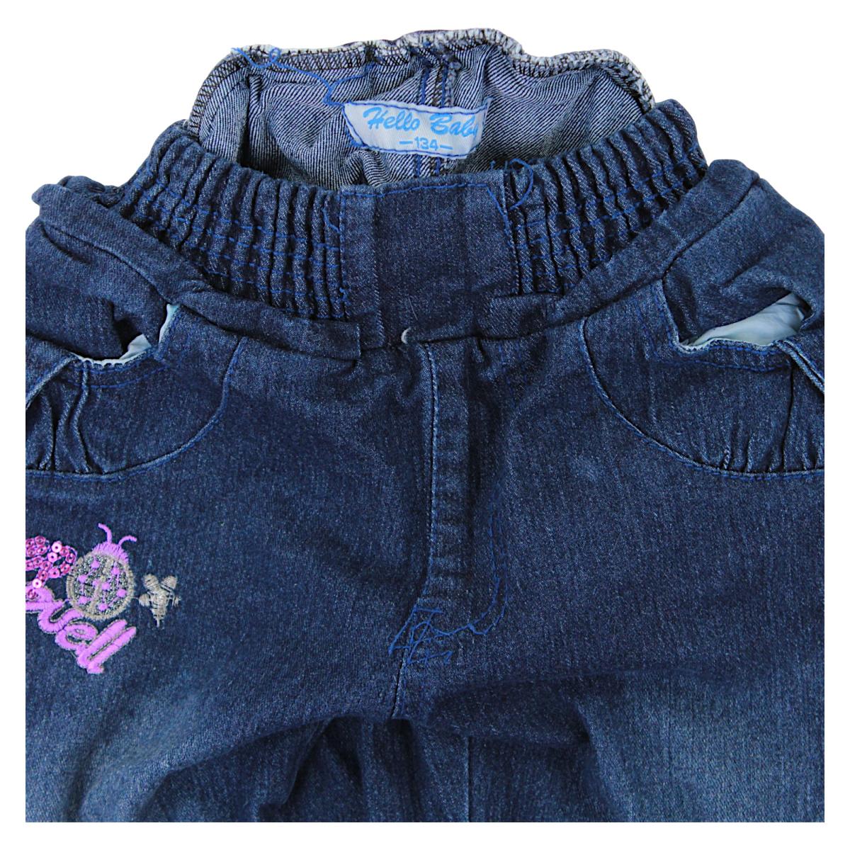 We offer navy blue trousers that are perfect for everyday wear. Made of high-quality materials, they provide comfort. The trousers feature an elastic waistband for added comfort and easy adjustment. Additionally, the trousers feature spacious pockets for storing essentials, and an interesting , ornate print gives them a unique character. A perfect choice for little fashionistas!