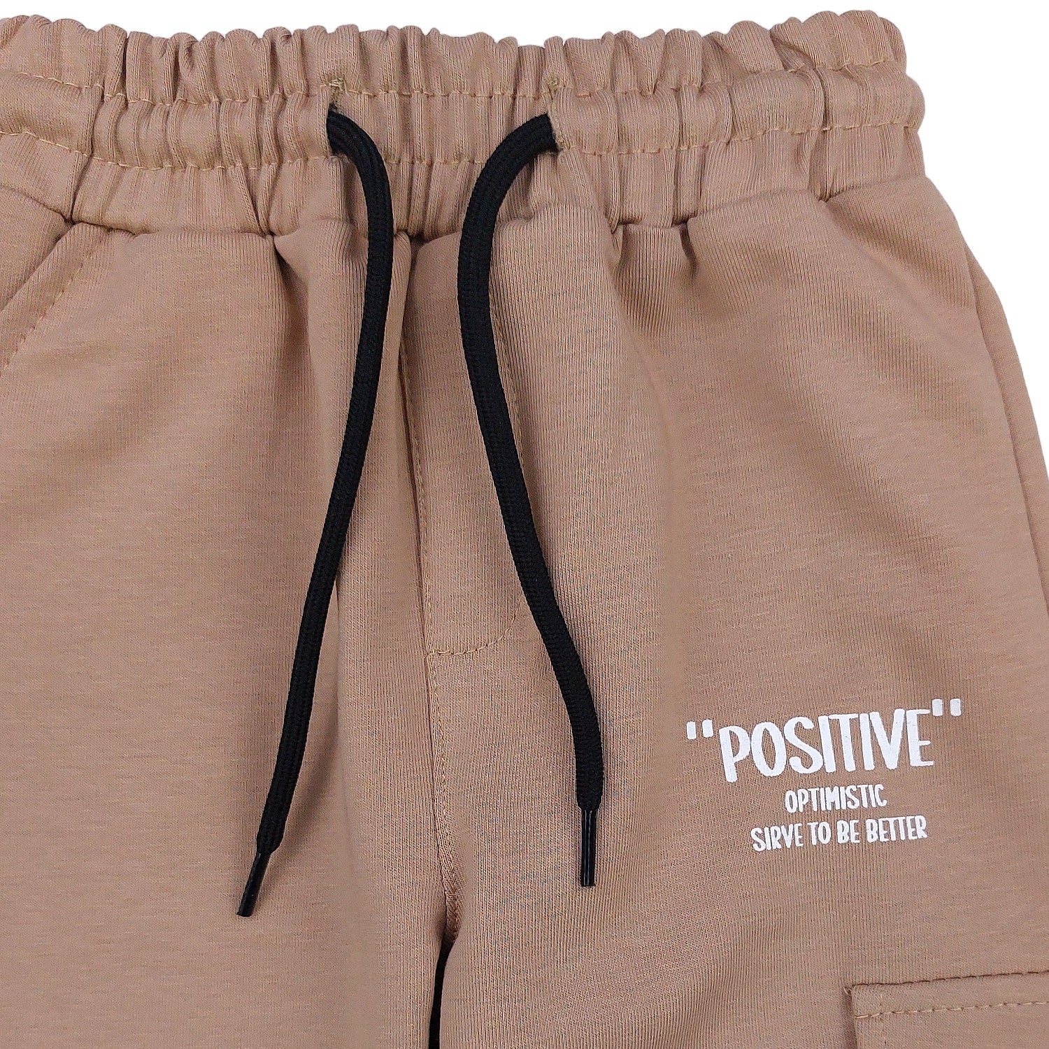 The trousers stand out with their carefully thought-out design. The elastic waistband with black drawstrings allows for a perfect fit, ensuring maximum comfort. The cuffs at the bottom of the legs not only add a sporty character, but also make the trousers fit well and protect the legs from drafts. The side pocket on the leg is a practical and stylish element - ideal for storing small items such as tissues or a small toy. Additionally, minimalist prints in the form of the inscription "Positive" give the trousers a modern look that will appeal to both children and parents.