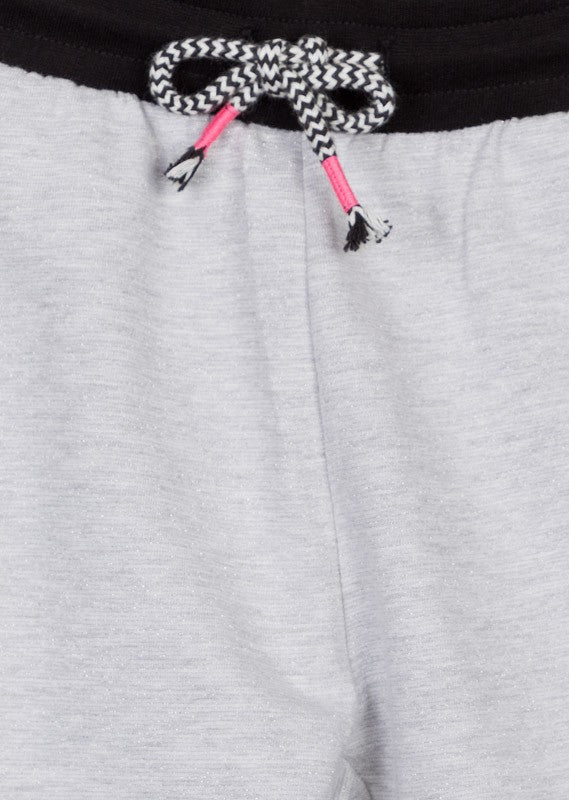 Children's long sweatpants with print and shine and pockets for girls Losan from the spring-summer collection product code 114-6026AL color 717 Gray. Children's clothing.