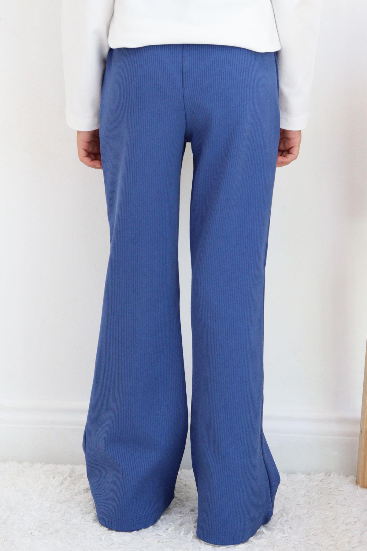 These charming blue flared trousers for girls are the perfect choice for the fall and winter season. Made of high-quality material, they provide comfort and freedom of movement. The trousers have an elastic waistband, making them easy to put on and take off. The classic flared cut adds style, while the ribbed pattern gives them a modern touch. Perfect for everyday wear and special occasions.
