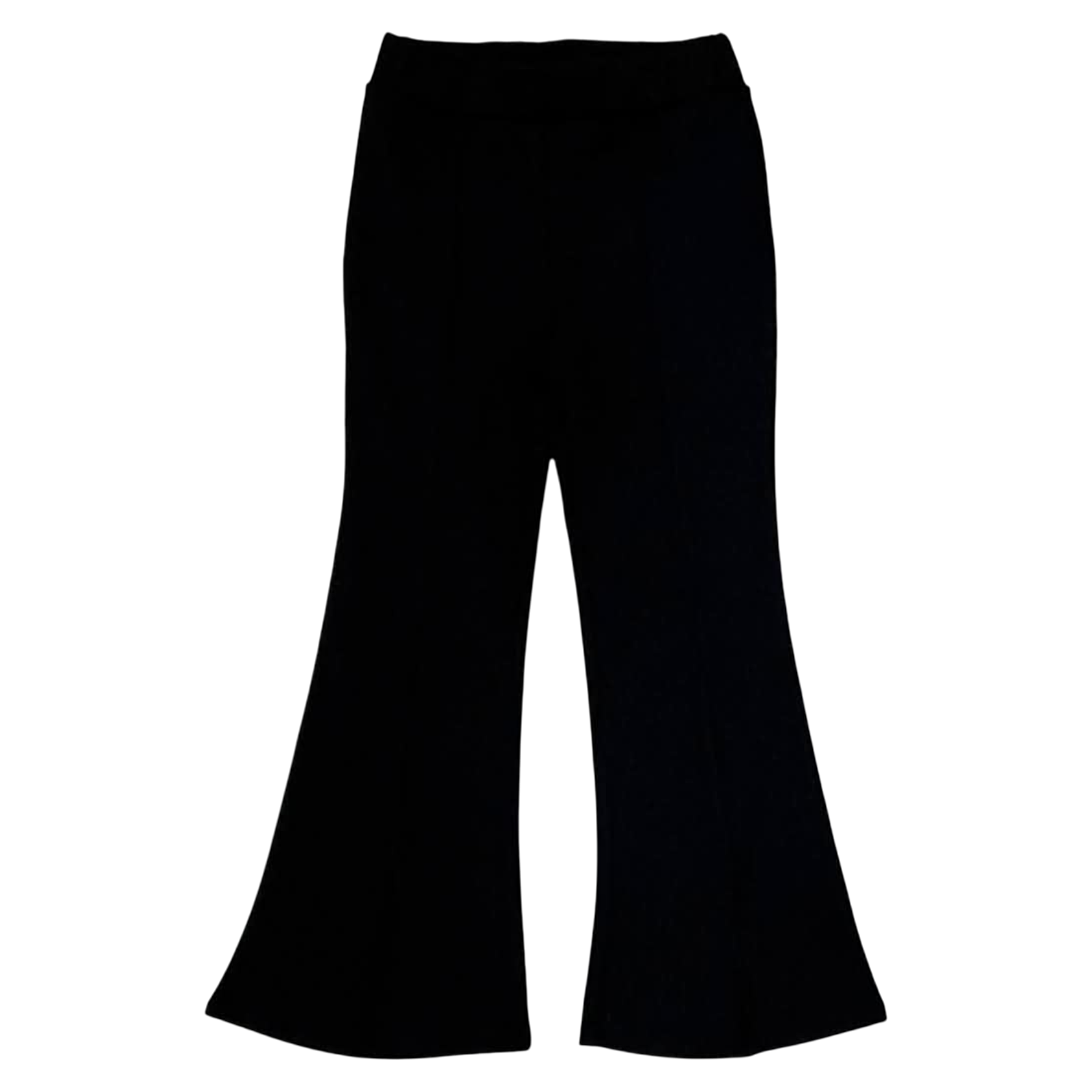 Elegant girls' flared trousers in a classic black colour . Perfect for the spring-summer season. Made of soft and elastic fabric, they provide full comfort of wearing. They have an elastic waist , which makes them fit perfectly to the figure, and side pockets for additional functionality. Perfect for both special occasions and everyday outings.