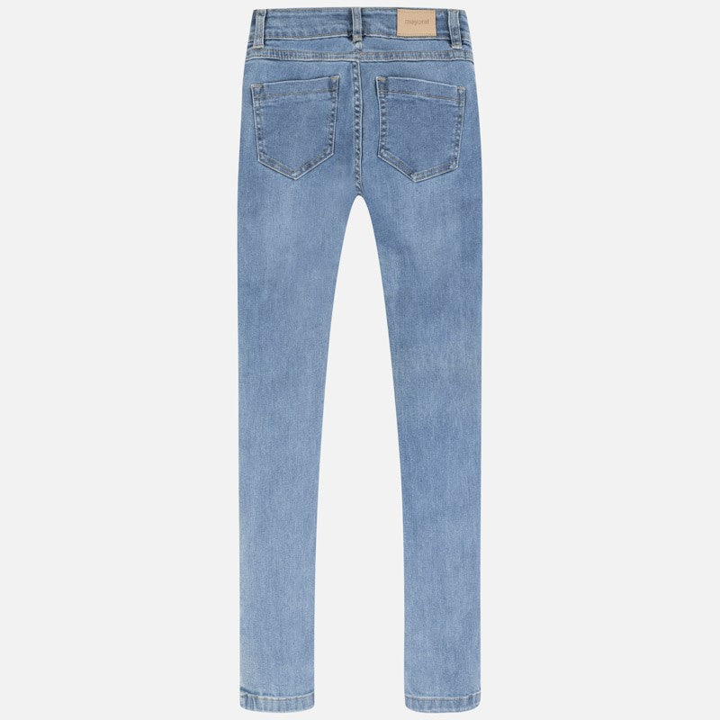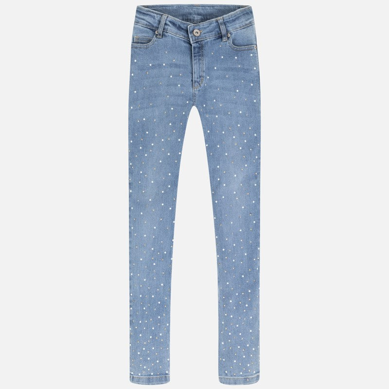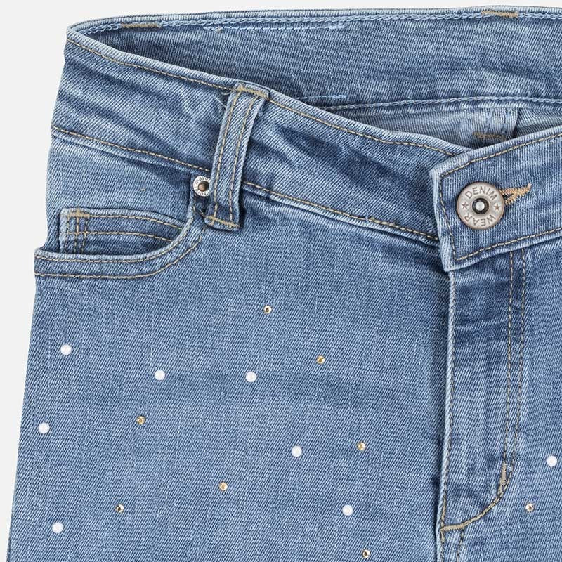 Long jeans for children with pockets and rhinestones girl Mayoral from the junior girl collection from the spring summer season product code 6530 color 87 Blue. Clothing for children's youth.