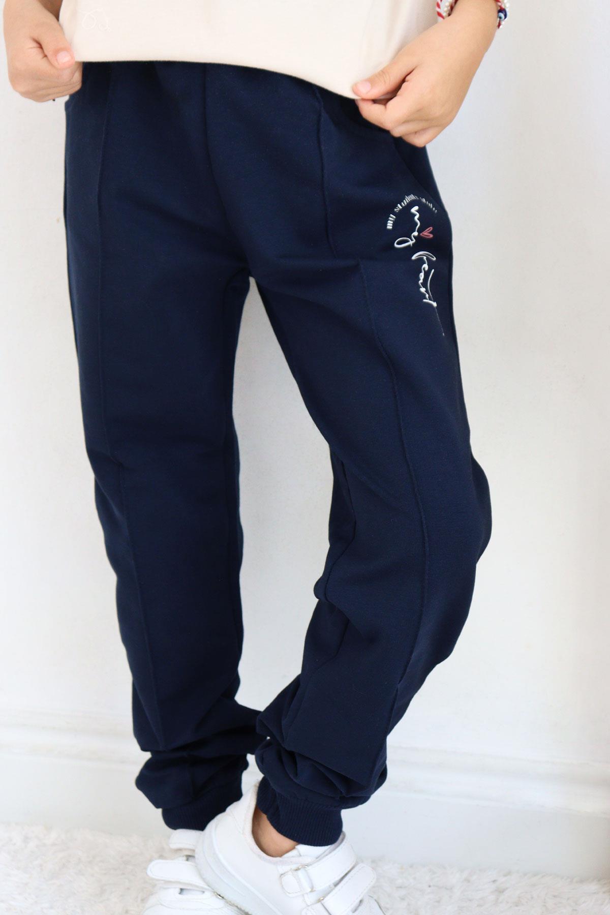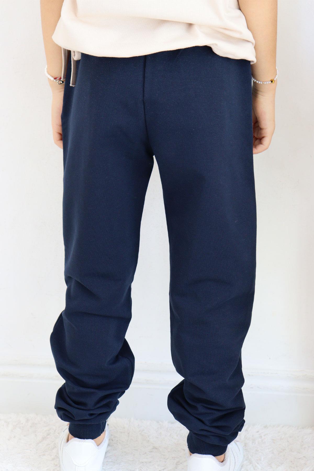 We present girls' Breeze joggers , perfect for the fall and winter season. Crafted in an elegant navy blue , these pants combine style and comfort. They feature an elastic waistband for a comfortable fit and practical side pockets for added functionality. The material is soft and pleasant to the touch, making them ideal for active kids. They're perfect for everyday wear and special occasions.