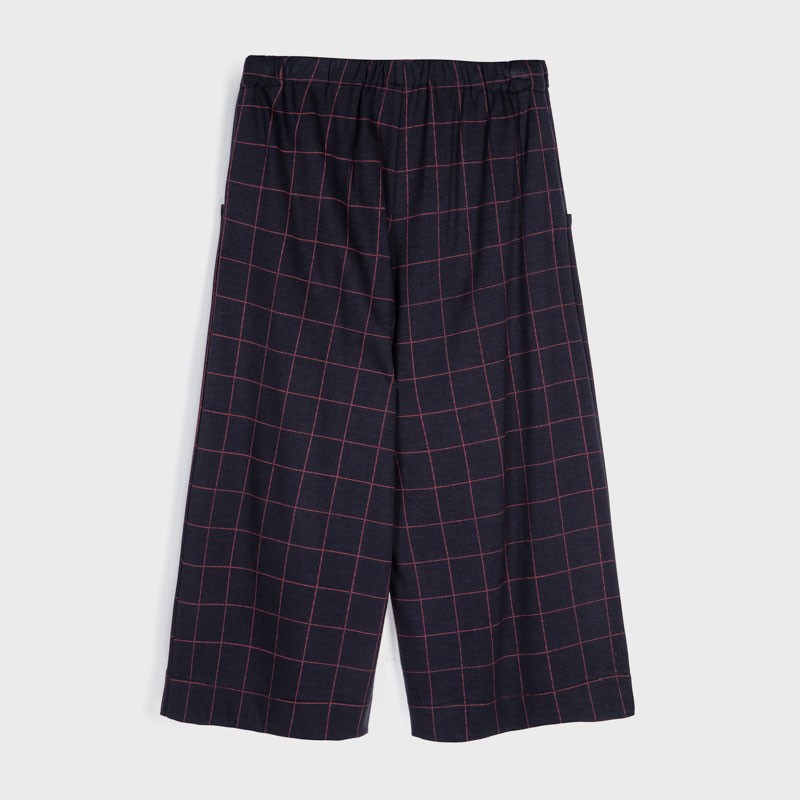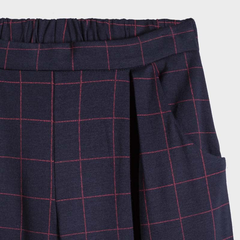 Children's trousers culottes with pockets in a check pattern on an elastic band girl Mayoral from the junior girl collection from the fall-winter season, product code 7544, color 6, navy blue. Children's clothing for young people.