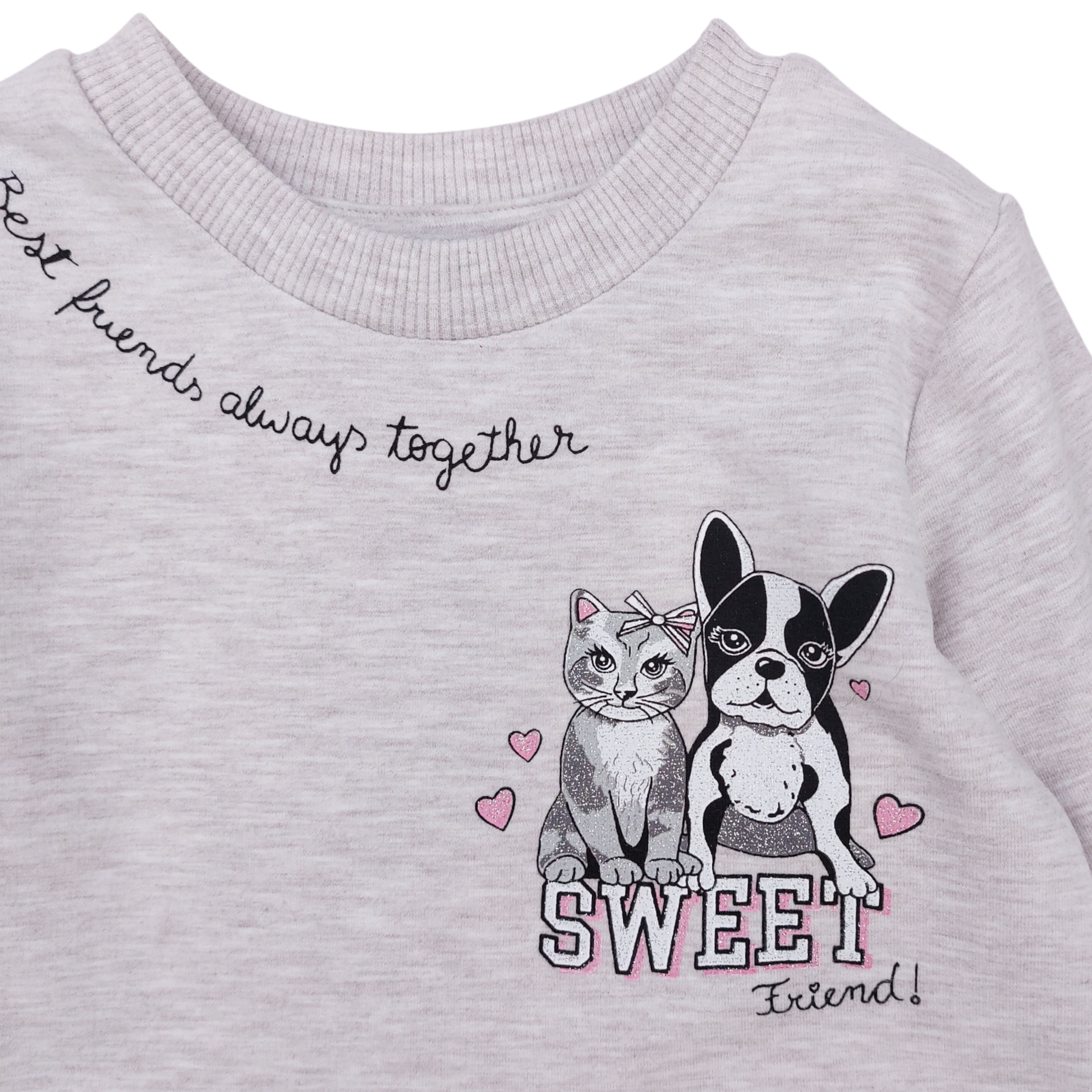 This girl's dress Pop Fashion is a perfect choice for the season autumn-winter . Adorable friends print - dog and cat - will make every little girl feel special. Perfect for cooler days, the dress has long sleeves and is made of soft, breathable material that ensures comfort all day long.