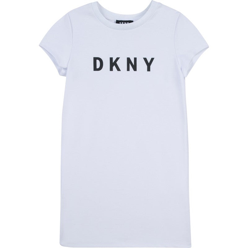 Short sleeve sports dress with print for girls DKNY from the spring-summer collection, product code D32785-N50, color white and black. Children's clothing.