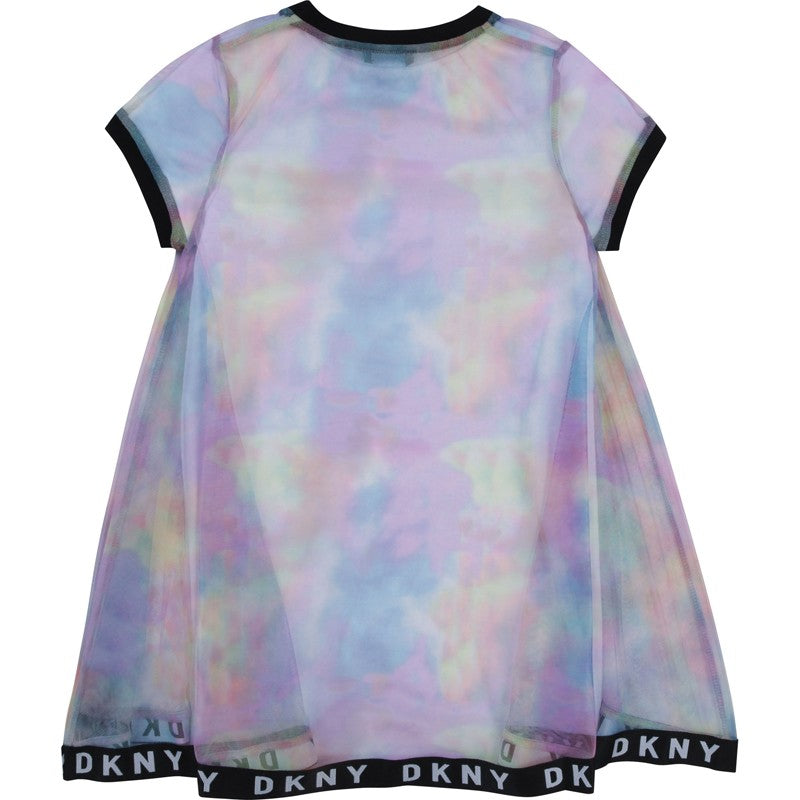 Short sleeve sports dress with print for girls DKNY from the spring-summer collection, product code D32785-Z40, rainbow color. Children's clothing.