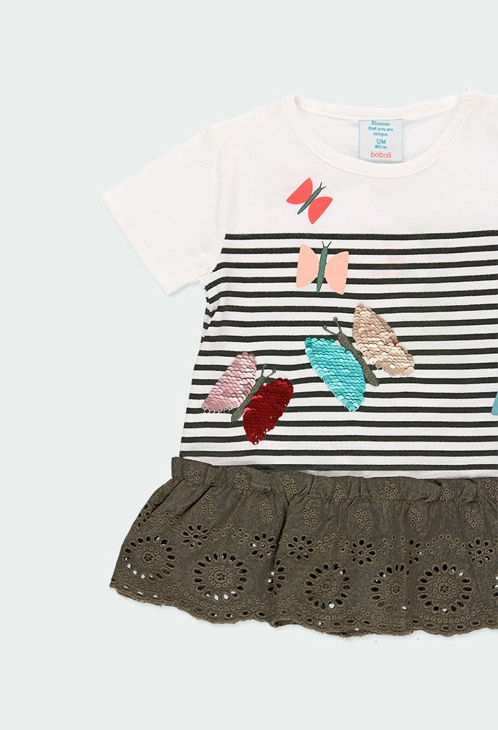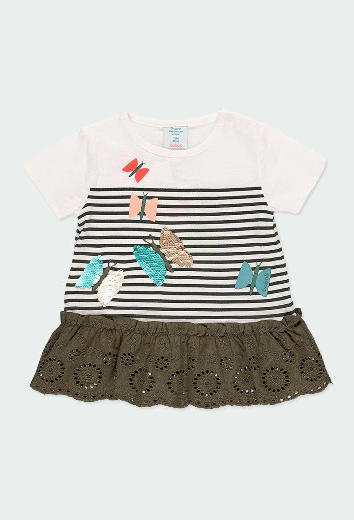 Baby girl dress for children BABY Boboli from the new spring summer collection product code 234111 color 1111 white/green. Children's clothing.