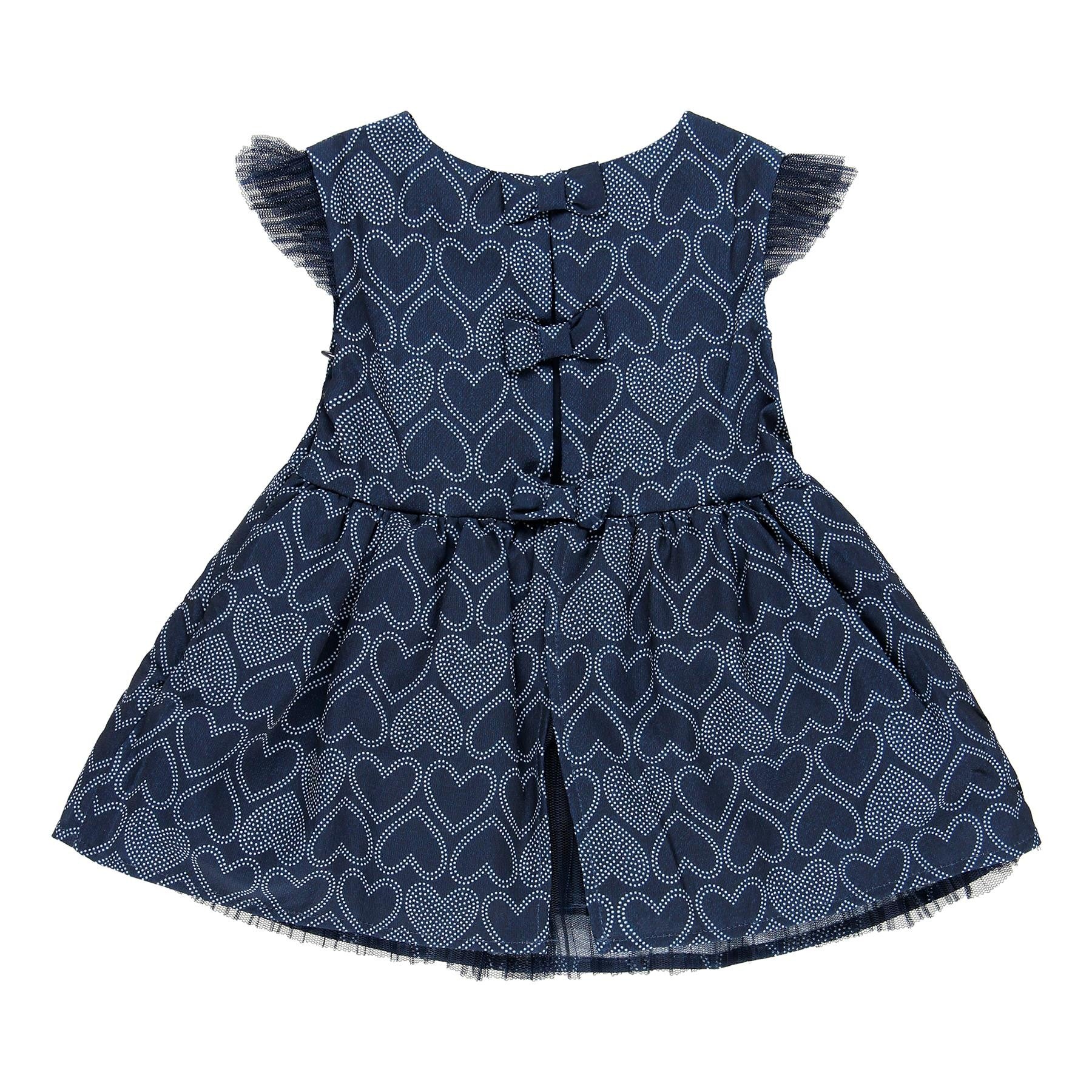 Elegant dress for girls for children with short sleeves, decorative tulle and heart print for girls Boboli from the spring summer collection, product code 709129, navy blue. Children's clothing.