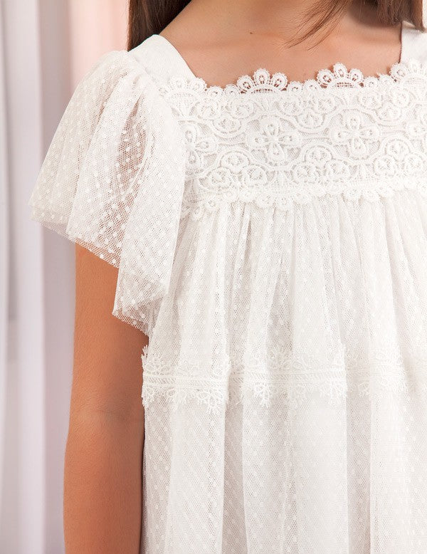 Formal dress tulle fantasy for children for girls Abel & Lula from the collection Girl mini premium from the season spring summer product code 5003 color 25 White. Elegant clothes for children. Children's fashion.