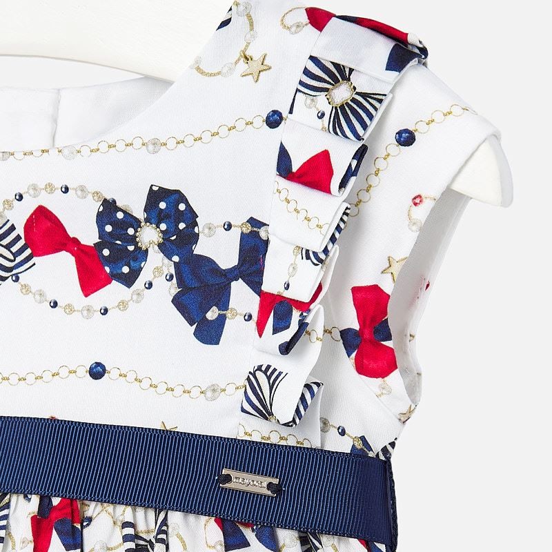 Satin dress for children elegant on straps with print and belt girl Mayoral from the baby girl collection from the spring summer season product code 1911 color 41 Navy blue. Children's clothing.