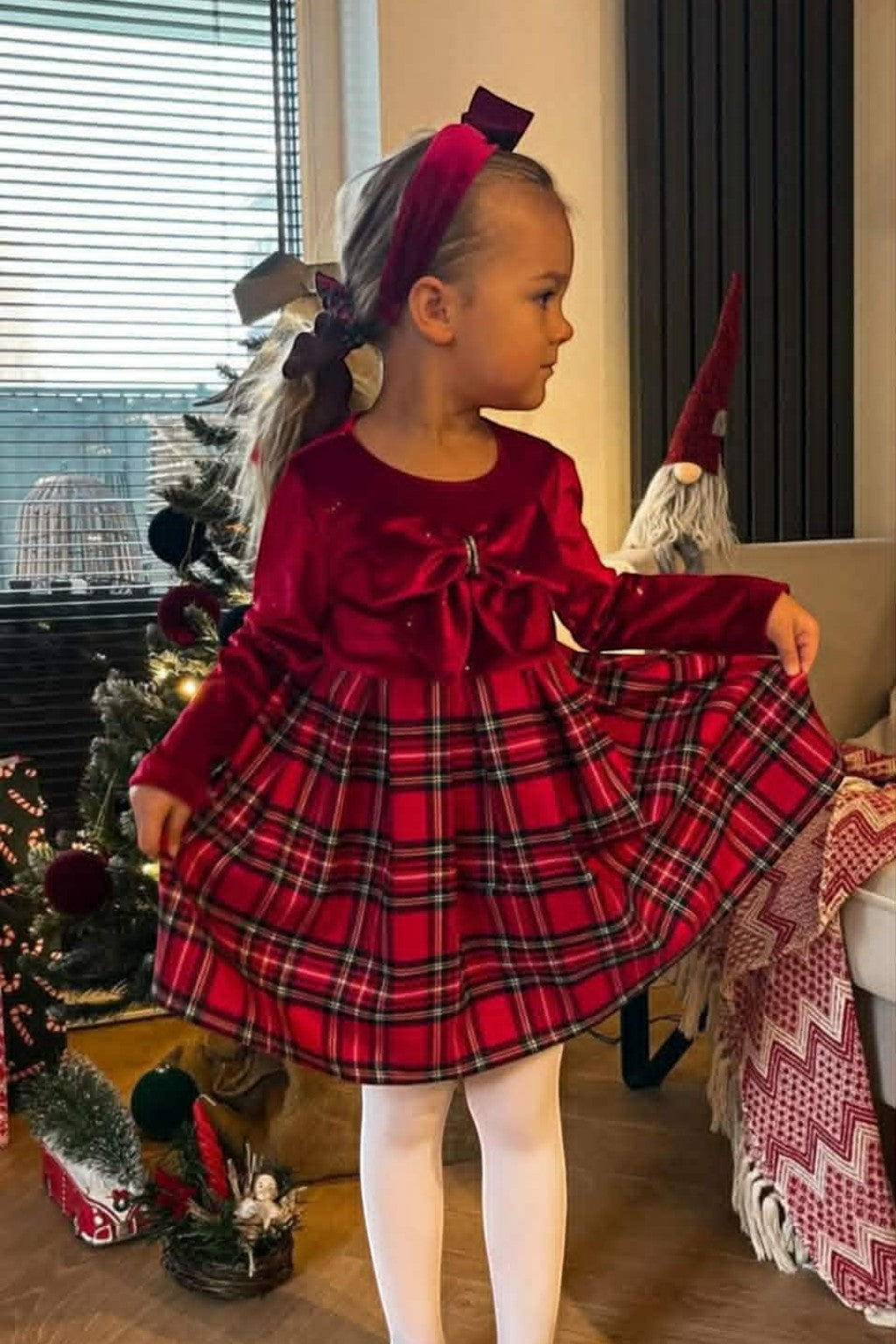Elegancka sukienka dziewczęca z kokardką w kolorze czerwonym