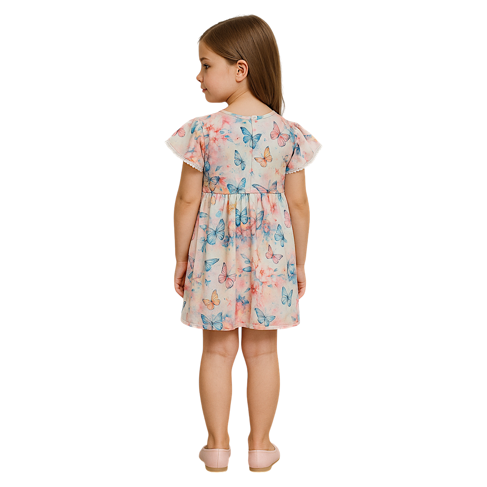 The girly pink butterfly dress from Guliwerkids is the perfect choice for warmer days. Made of soft material, it ensures comfort . The subtle butterfly pattern adds charm, and the loose fit allows for freedom of movement. The dress has delicate straps and no pockets or zippers. It's lightweight and airy, perfect for spring walks and summer parties.