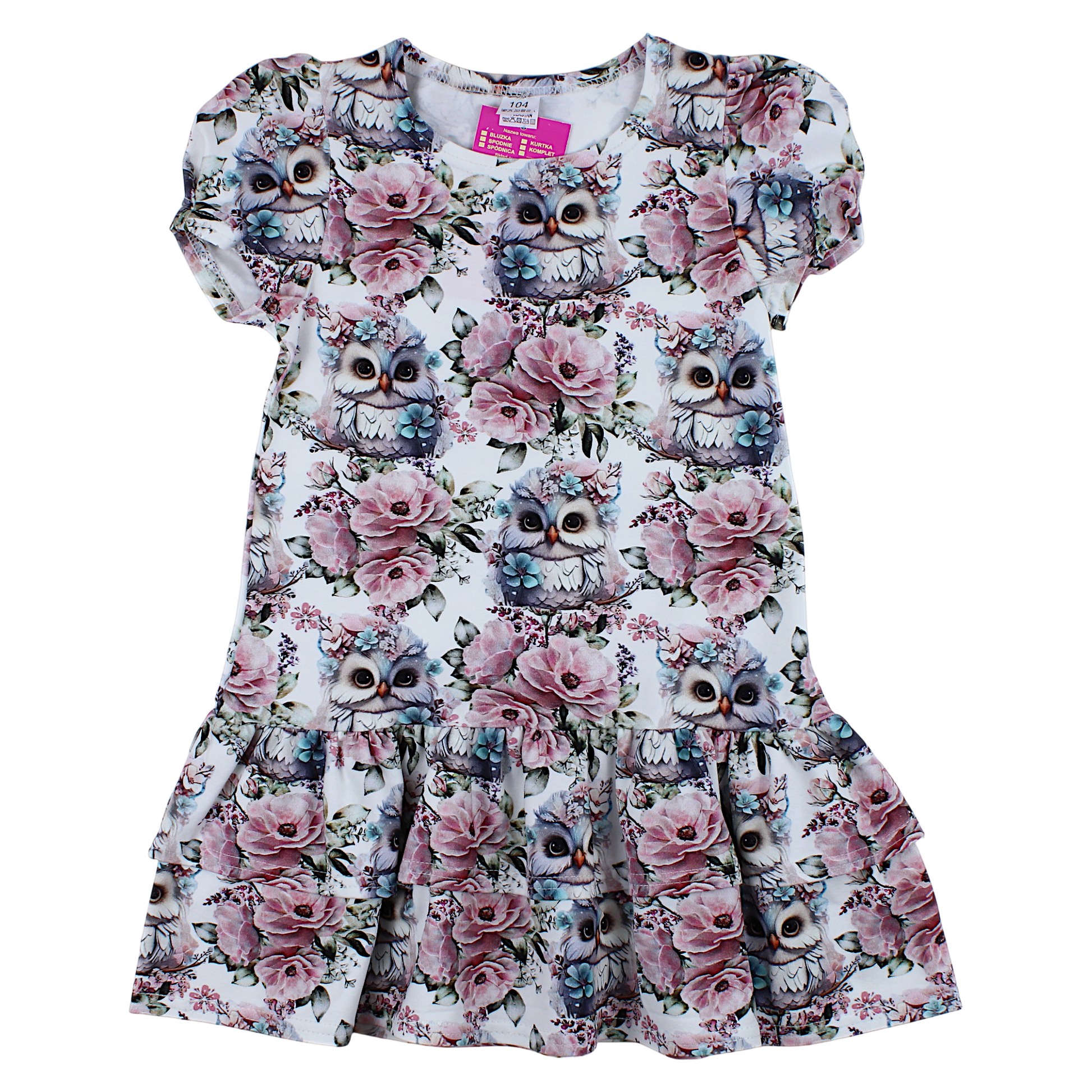 Owl dress digital print girl pink Natalia 4355-2425-40