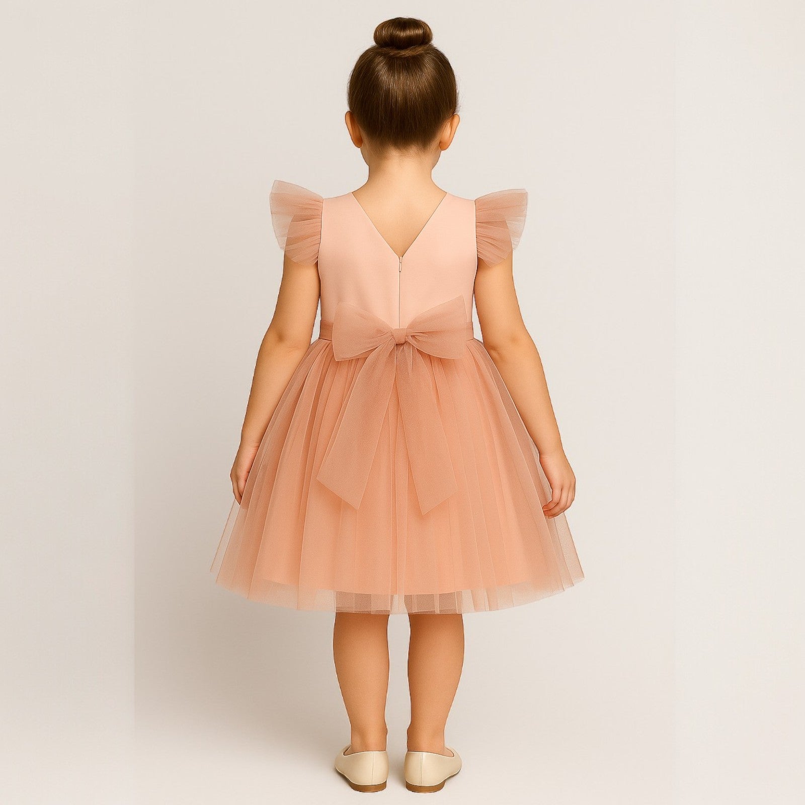 This powder pink dress for girls is the perfect choice for special occasions. Crafted from delicate tulle , it looks incredibly elegant. Elegant floral details add a touch of charm. Sleeveless , it allows for freedom of movement. Perfect for spring and summer days, the top is made of soft cotton for comfort, while the bottom is made of lightweight polyester . The dress has no pockets and fastens at the back. This product is designed for girls.