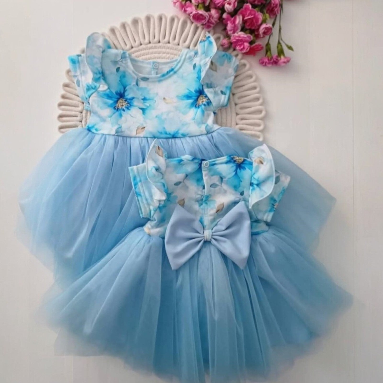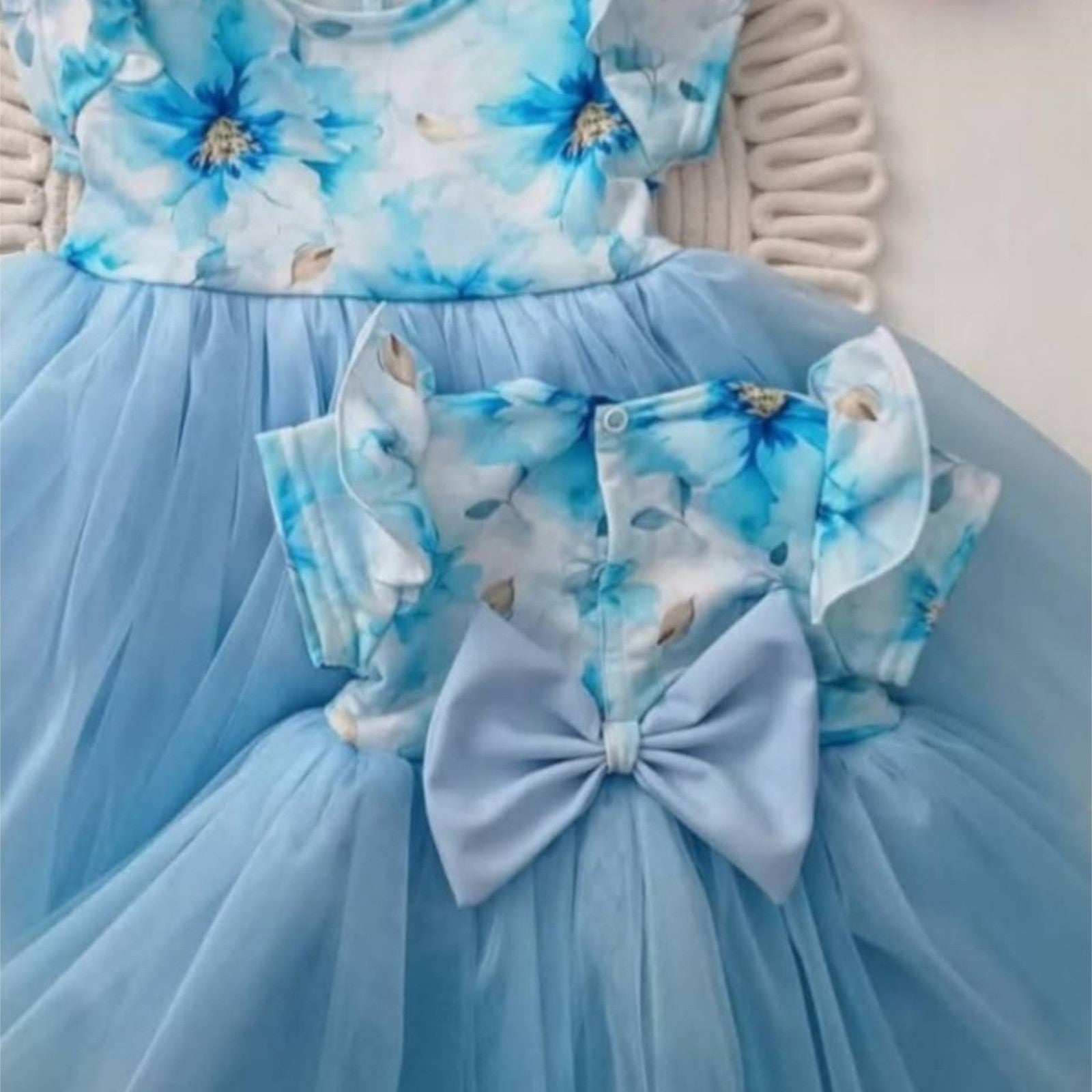 The presented tulle dress is the perfect choice for every young lady dreaming of a unique look. Made entirely of delicate tulle, it tempts with its lightness and subtlety. The dress has a decorative bow at the back, which adds elegance and makes it stand out from the others. The blue color of this creation is always in fashion, perfect for parties, weddings or other special occasions.