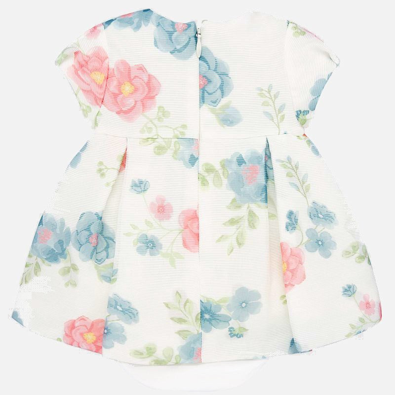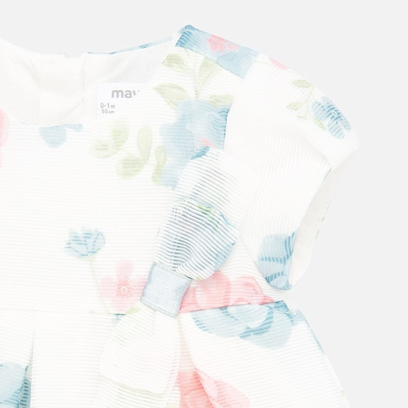 Elegant dress for children with short sleeves and a floral print for girl Mayoral from the newborn girl collection from the spring summer season, product code 1875, color 88 Blue. Clothing for newborns.