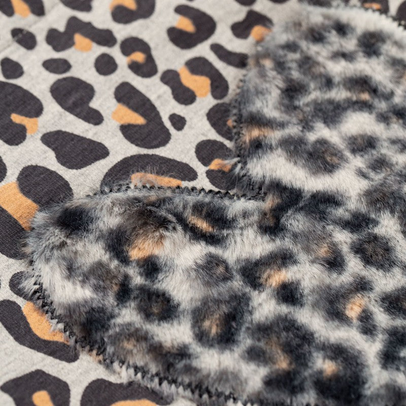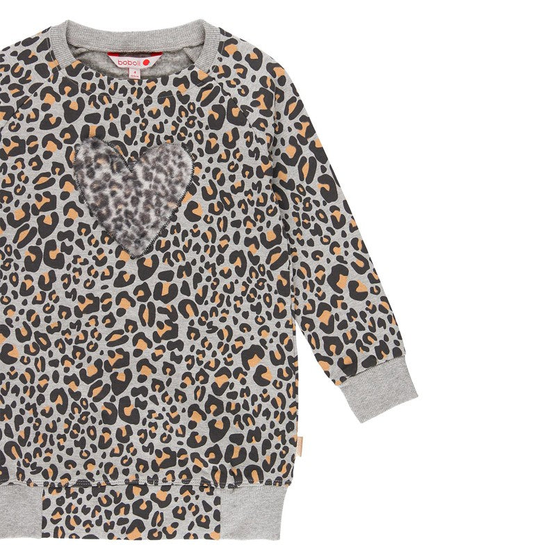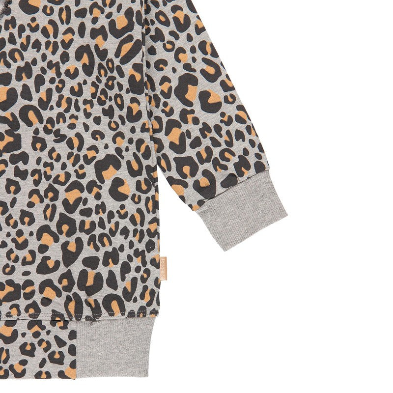 Cotton dress for girls for children with long sleeves, fur and leopard print girl Boboli from the autumn winter collection product code 441087 color gray. Children's clothing.
