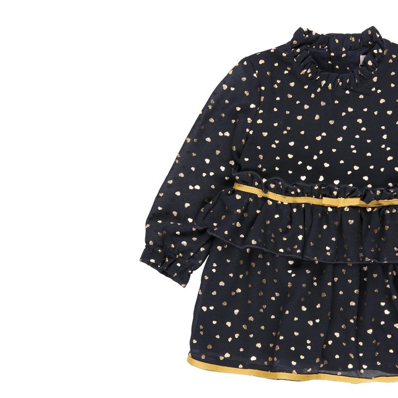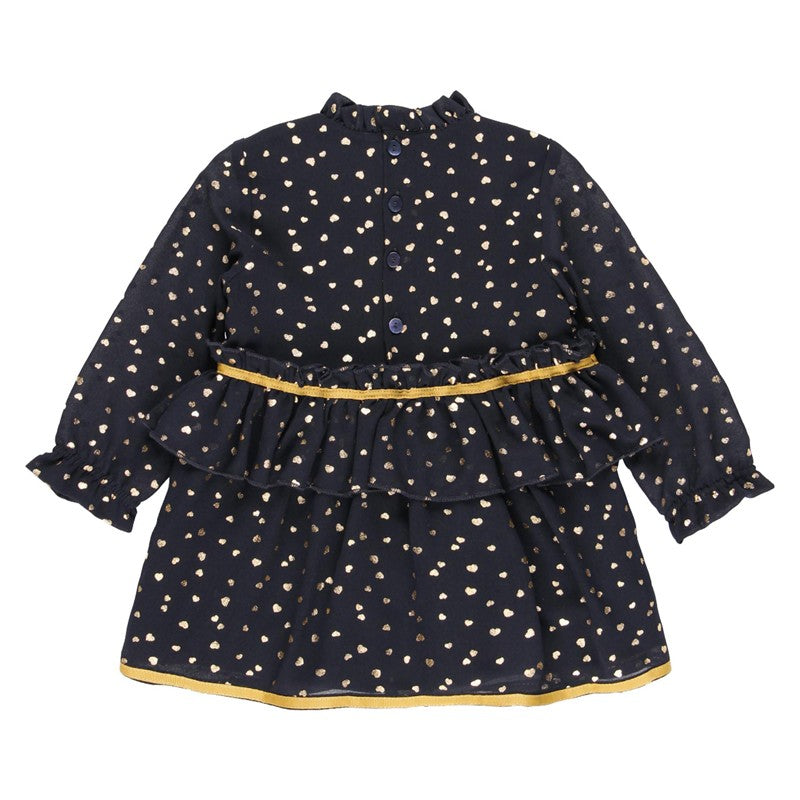 Baby girl chiffon dress for children with long sleeves and heart print girl Boboli from the autumn winter collection product code 701132 navy blue. Children's clothing.