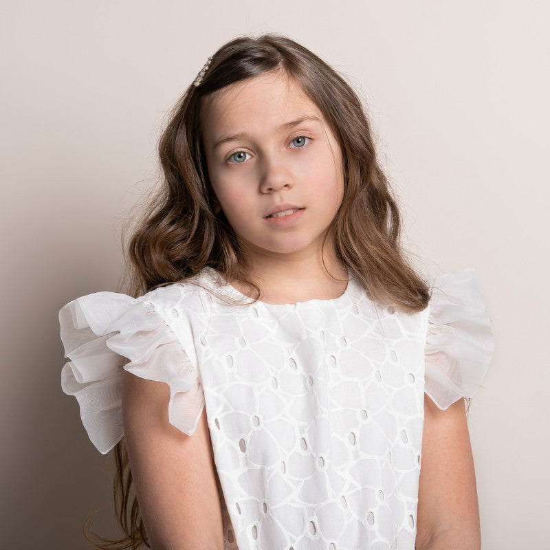 Children's formal dress for girls from the spring summer collection, product code 18/21, cream color. Fashion for children.