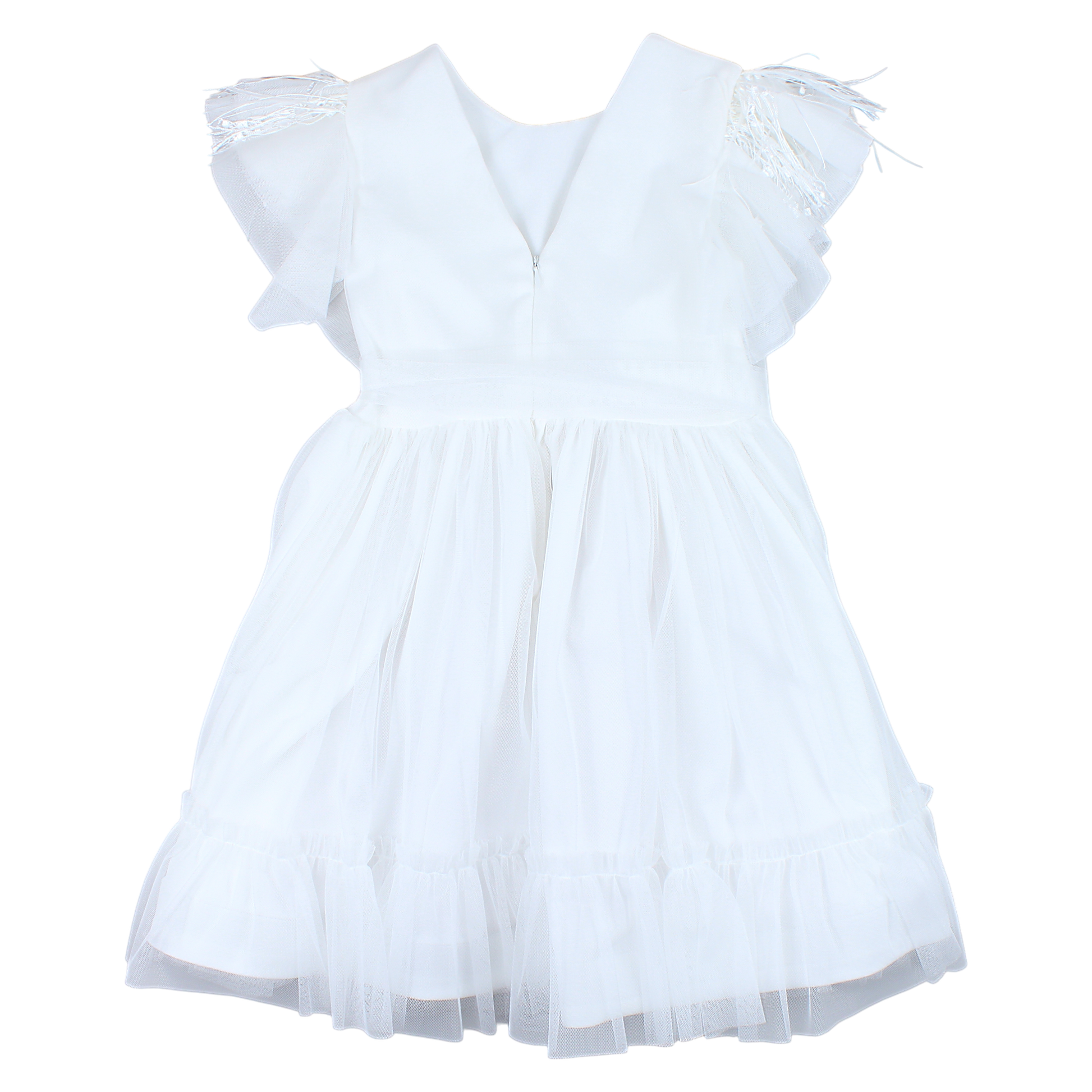 Elegant girl's dress with feathers, cream