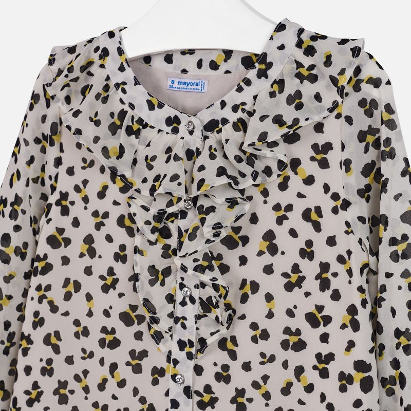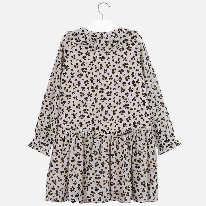 Mayoral children's clothing. Long sleeve dress with print from the junior girl collection from the fall winter season. Manufacturer's product code 7931 color 76 Cream.