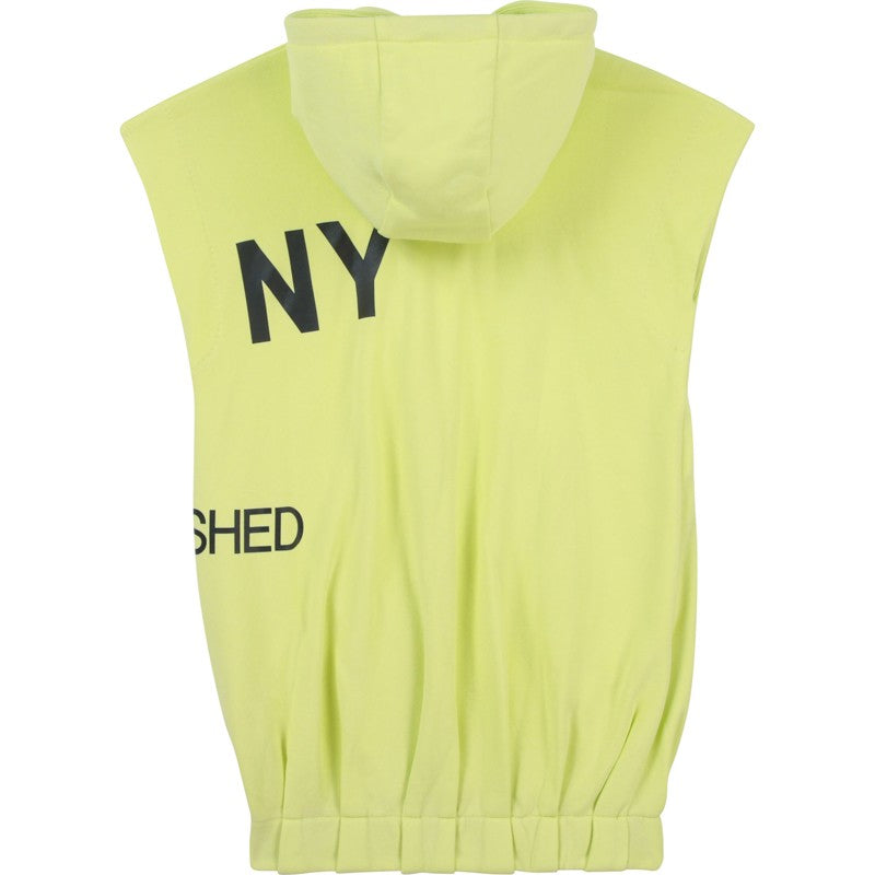 Hooded sports dress with short sleeves and print for girls DKNY from the spring-summer collection product code D32778-60B yellow. Children's clothing.